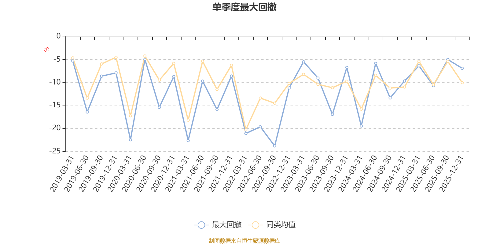 通过所选区间该基金净值增长率分位图,可以观察该基金与同类基金业绩比较情况。图为坐标原点到区间内某时点的净值增长率在同类基金中的分位数。