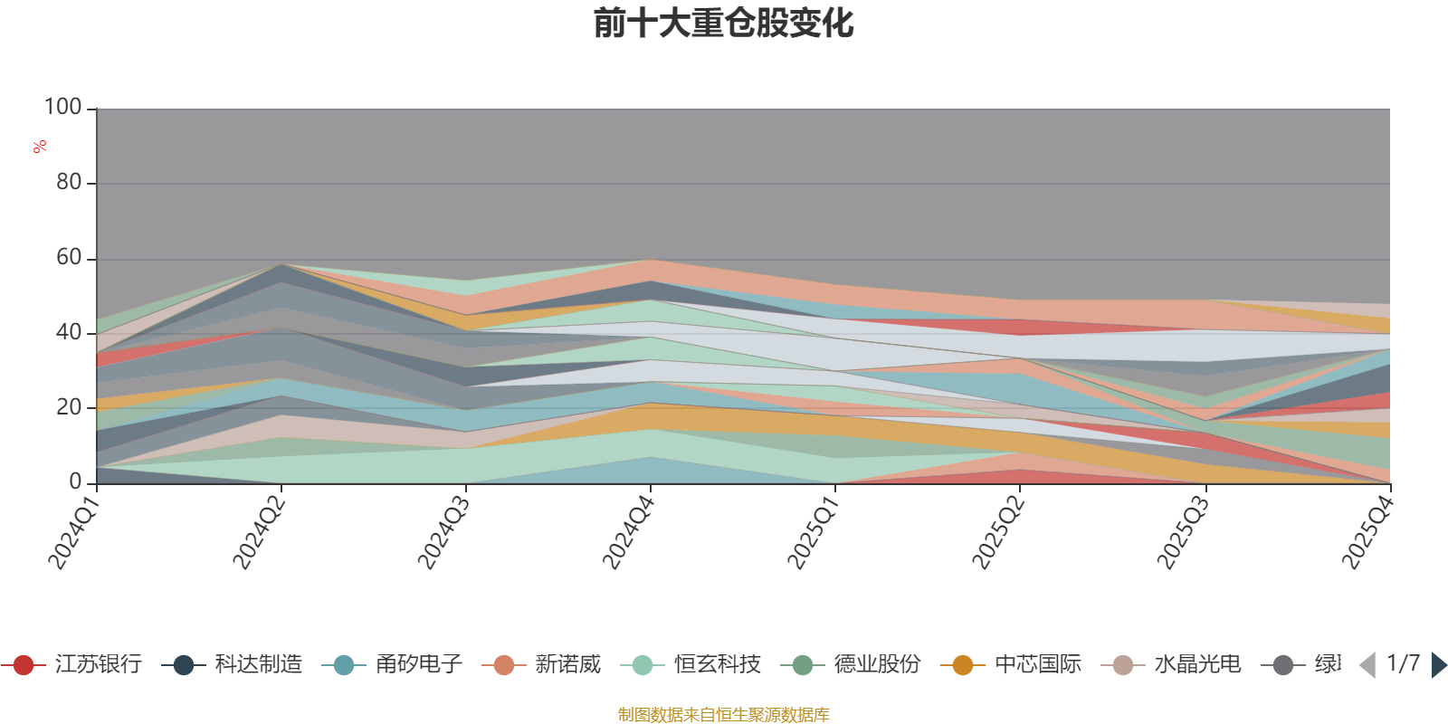 截至2025年四季度末,基金十大重仓股分别是新易盛、中际旭创、金诚信、山东黄金、赤峰黄金、紫金矿业、腾景科技、华通线缆、盛屯矿业、天孚通信。