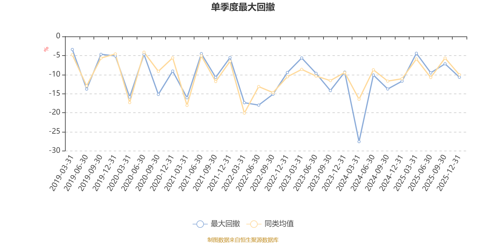 通过所选区间该基金净值增长率分位图,可以观察该基金与同类基金业绩比较情况。图为坐标原点到区间内某时点的净值增长率在同类基金中的分位数。