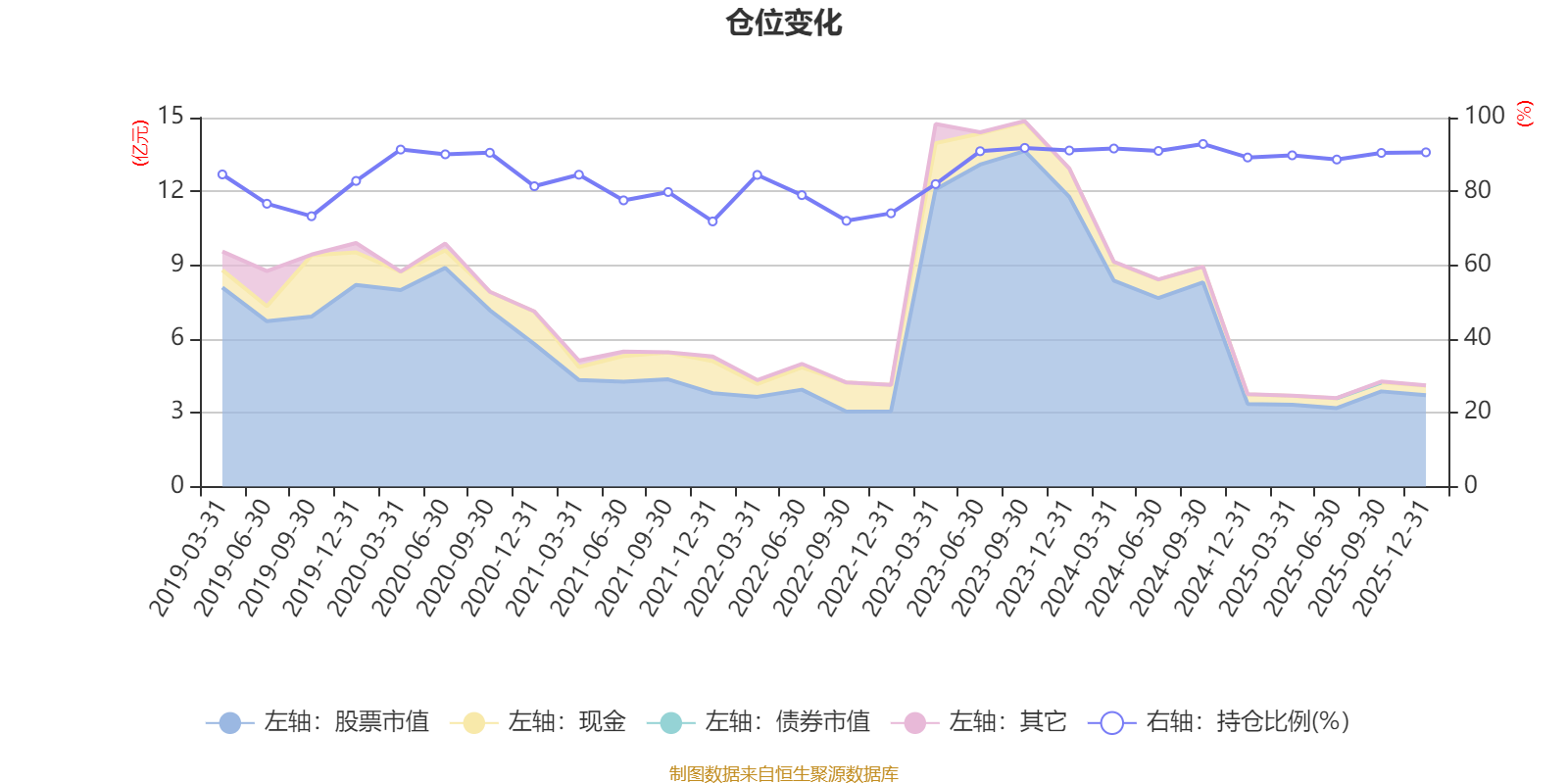 据定期报告数据统计,近三年平均股票仓位为89.98%,同类平均为85.83%。2024年三季度末基金达到92.85%的最高仓位,2021年末最低,为71.86%。
