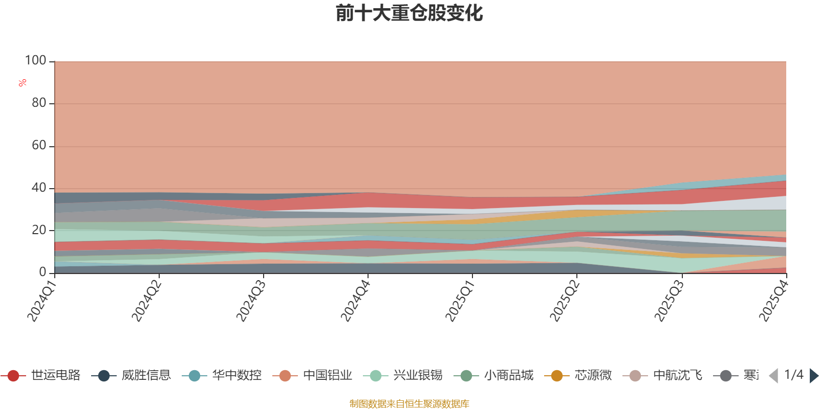 截至2025年四季度末,基金十大重仓股分别是紫金矿业、北方华创、宁德时代、中国铝业、寒武纪、银轮股份、云铝股份、世运电路、东山精密、金诚信。