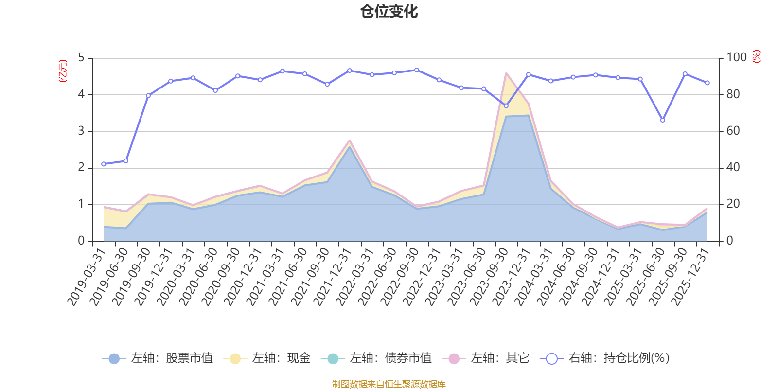 据定期报告数据统计,近三年平均股票仓位为85.28%,同类平均为72.57%。2022年三季度末基金达到93.65%的最高仓位,2019年一季度末最低,为42.27%。