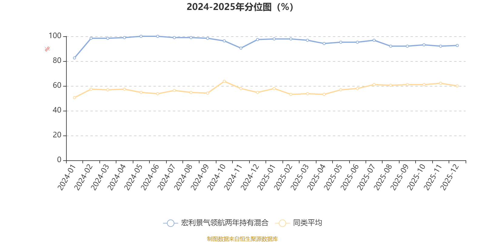 通过所选区间该基金净值增长率分位图,可以观察该基金与同类基金业绩比较情况。图为坐标原点到区间内某时点的净值增长率在同类基金中的分位数。