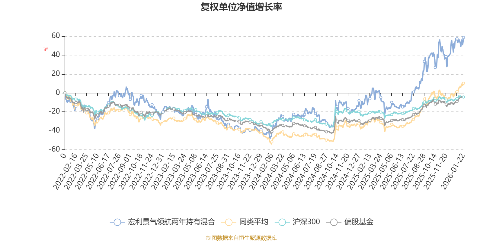 截至1月22日,宏利景气领航两年持有混合近三个月复权单位净值增长率为13.68%,位于同类可比基金125/229;近半年复权单位净值增长率为57.22%,位于同类可比基金105/229;近一年复权单位净值增长率为61.94%,位于同类可比基金111/222;近三年复权单位净值增长率为89.36%,位于同类可比基金37/165。