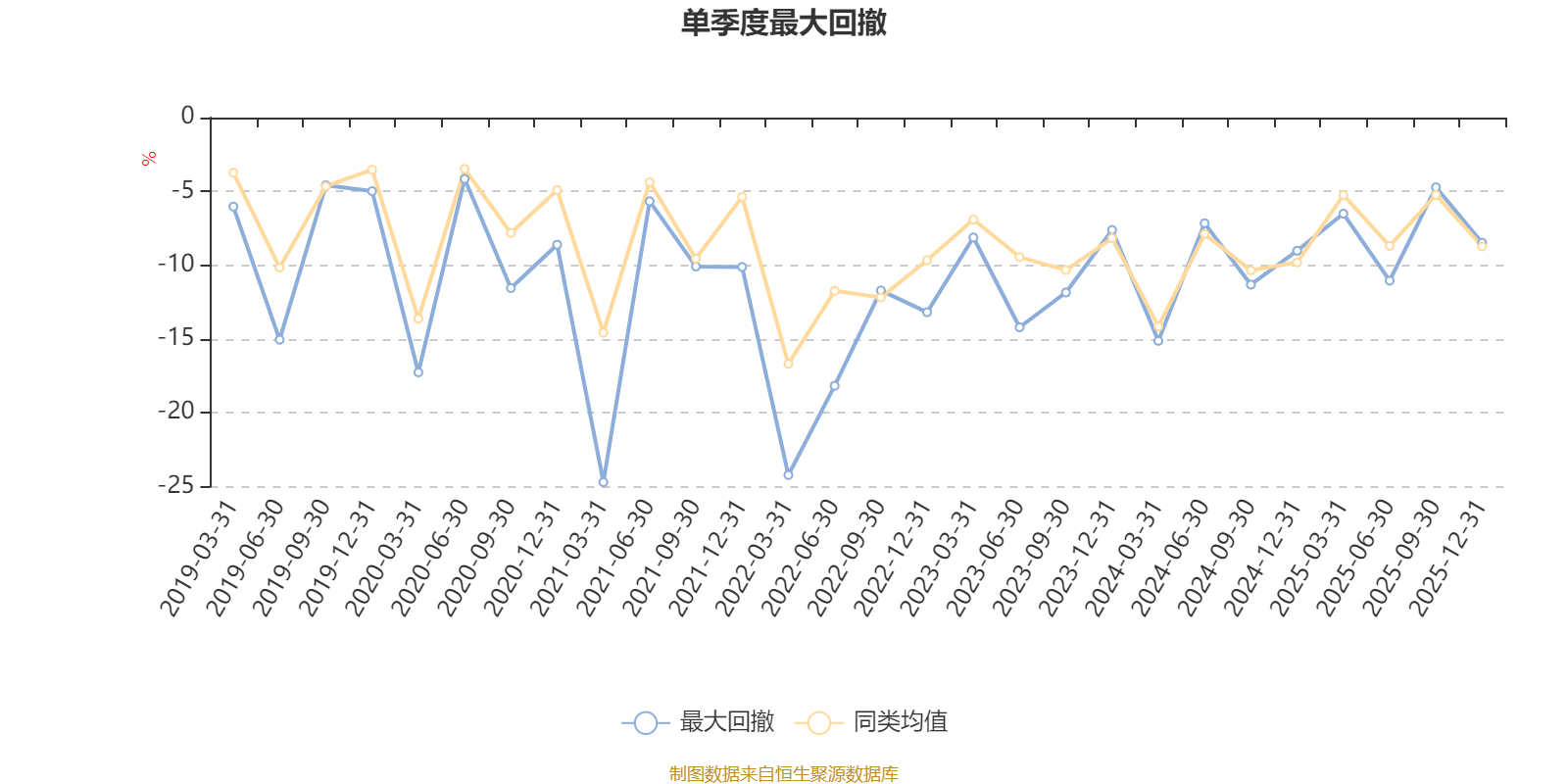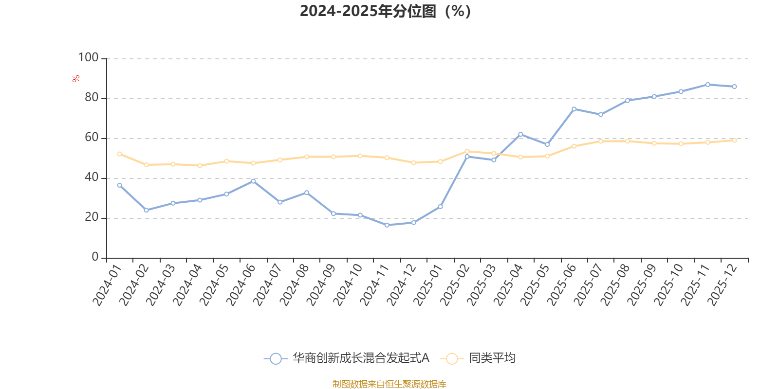通过所选区间该基金净值增长率分位图,可以观察该基金与同类基金业绩比较情况。图为坐标原点到区间内某时点的净值增长率在同类基金中的分位数。