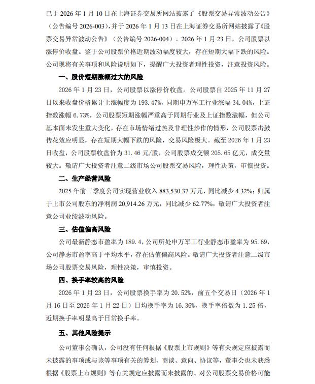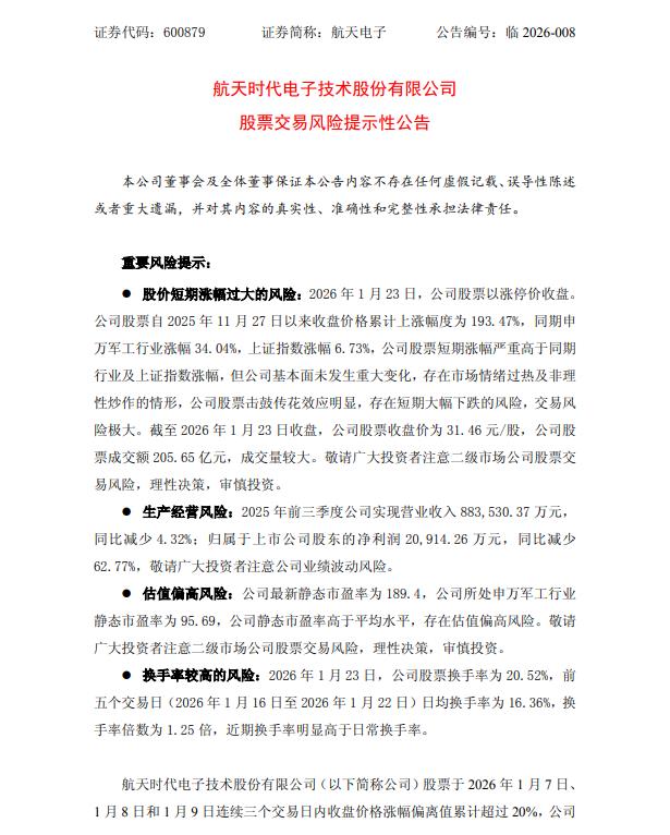 航天电子:公司股票击鼓传花效应明显 存在短期大幅下跌的风险