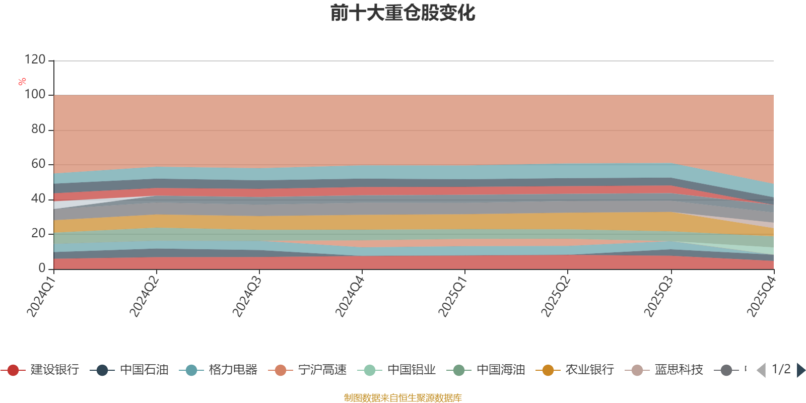 且持股标的较为稳定。截至2025年四季度末,基金十大重仓股分别是工商银行、中国海油、中国移动、农业银行、建设银行、中国神华、美的集团、中国铝业、中国石油、蓝思科技。