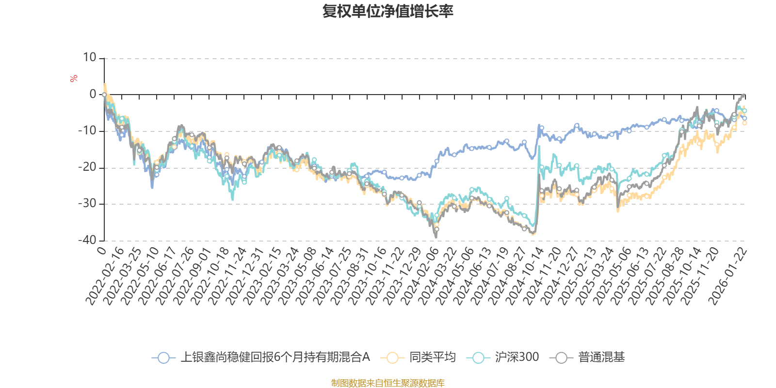 截至1月22日,上银鑫尚稳健回报6个月持有期混合A近三个月复权单位净值增长率为-0.61%,位于同类可比基金126/134;近半年复权单位净值增长率为0.39%,位于同类可比基金130/134;近一年复权单位净值增长率为6.13%,位于同类可比基金125/131;近三年复权单位净值增长率为9.55%,位于同类可比基金84/124。