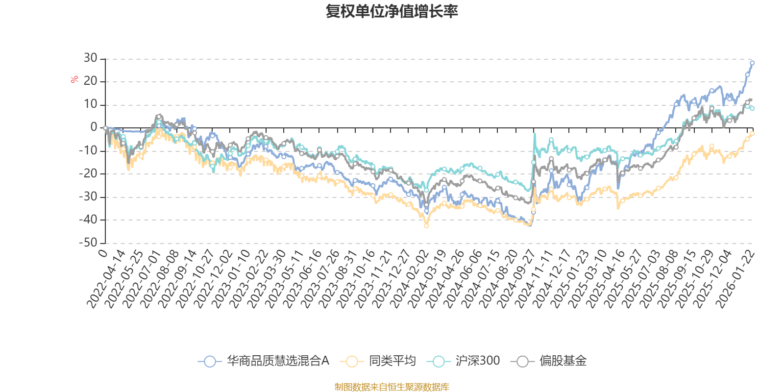 该基金属于偏股混合型基金。截至1月22日,单位净值为1.282元。基金经理是邓默,目前管理9只基金。其中,截至1月22日,华商品质慧选混合A近一年复权单位净值增长率最高,达72.39%;华商红利优选混合最低,为19.5%。