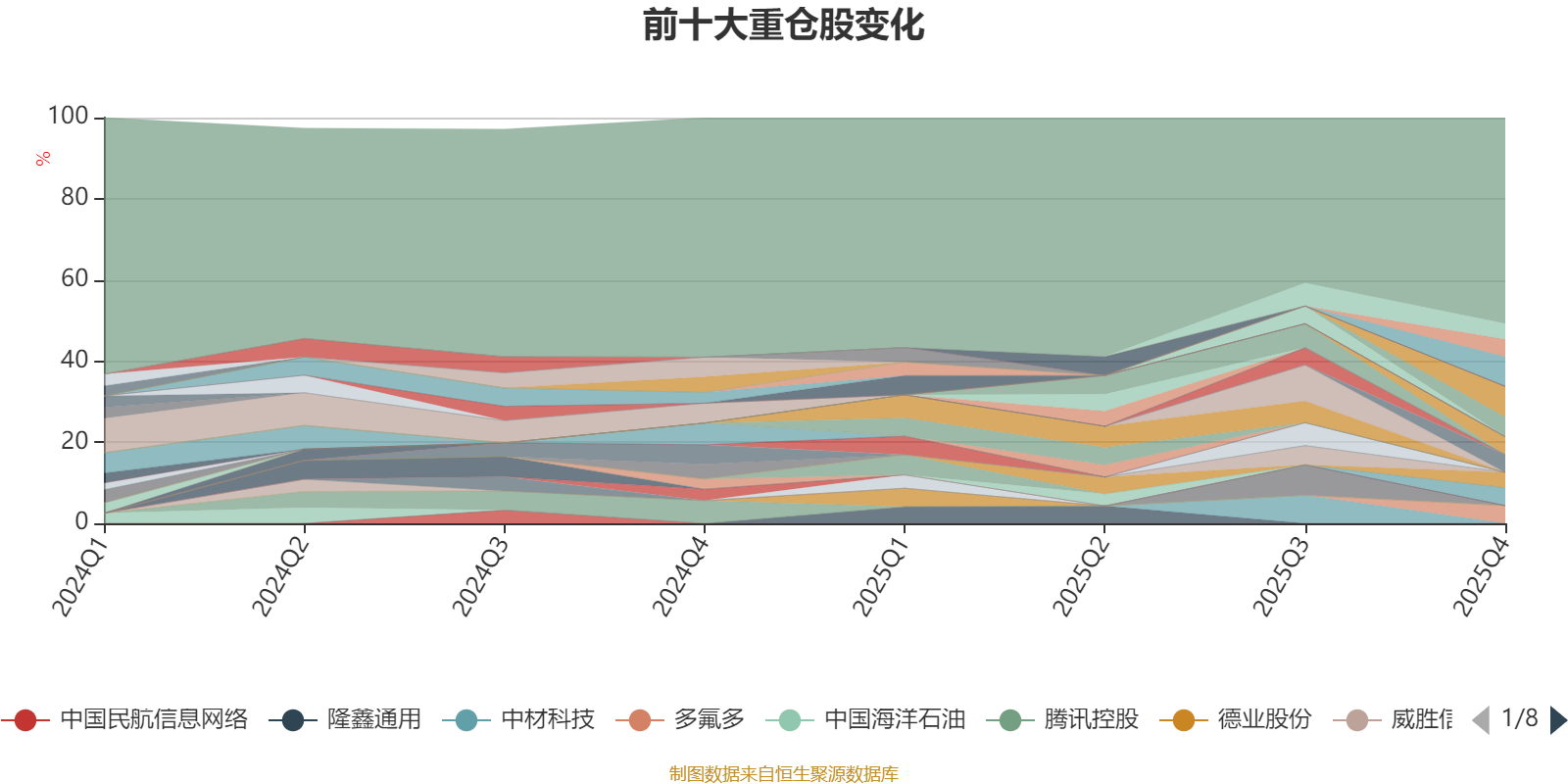 截至2025年四季度末,基金十大重仓股分别是宁德时代、阳光电源、天赐材料、华友钴业、多氟多、四方股份、诺德股份、国城矿业、金风科技、春风动力。