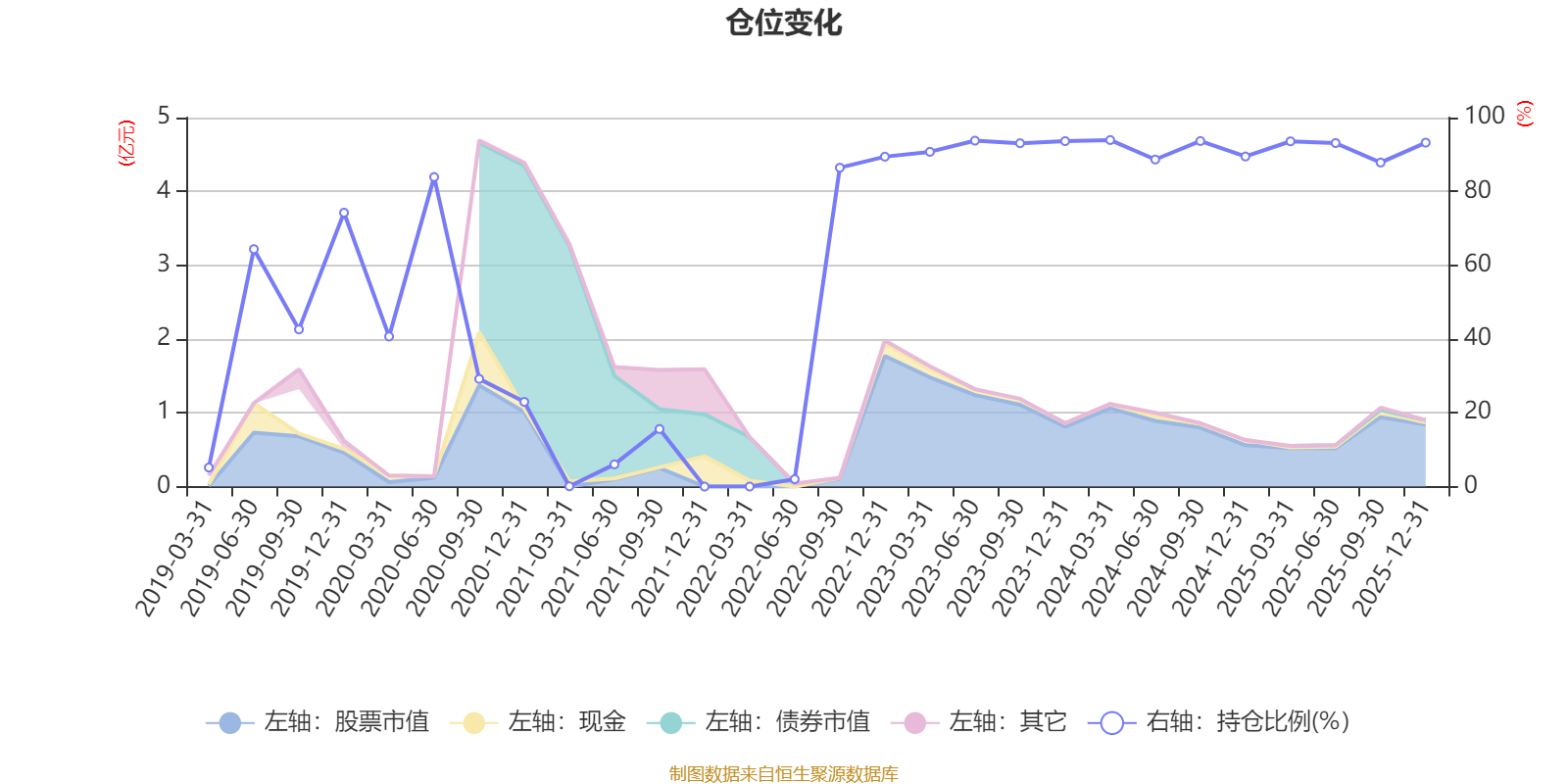 据定期报告数据统计,近三年平均股票仓位为92.04%,同类平均为72.57%。2024年一季度末基金达到93.92%的最高仓位,2021年一季度末最低,为0.07%。