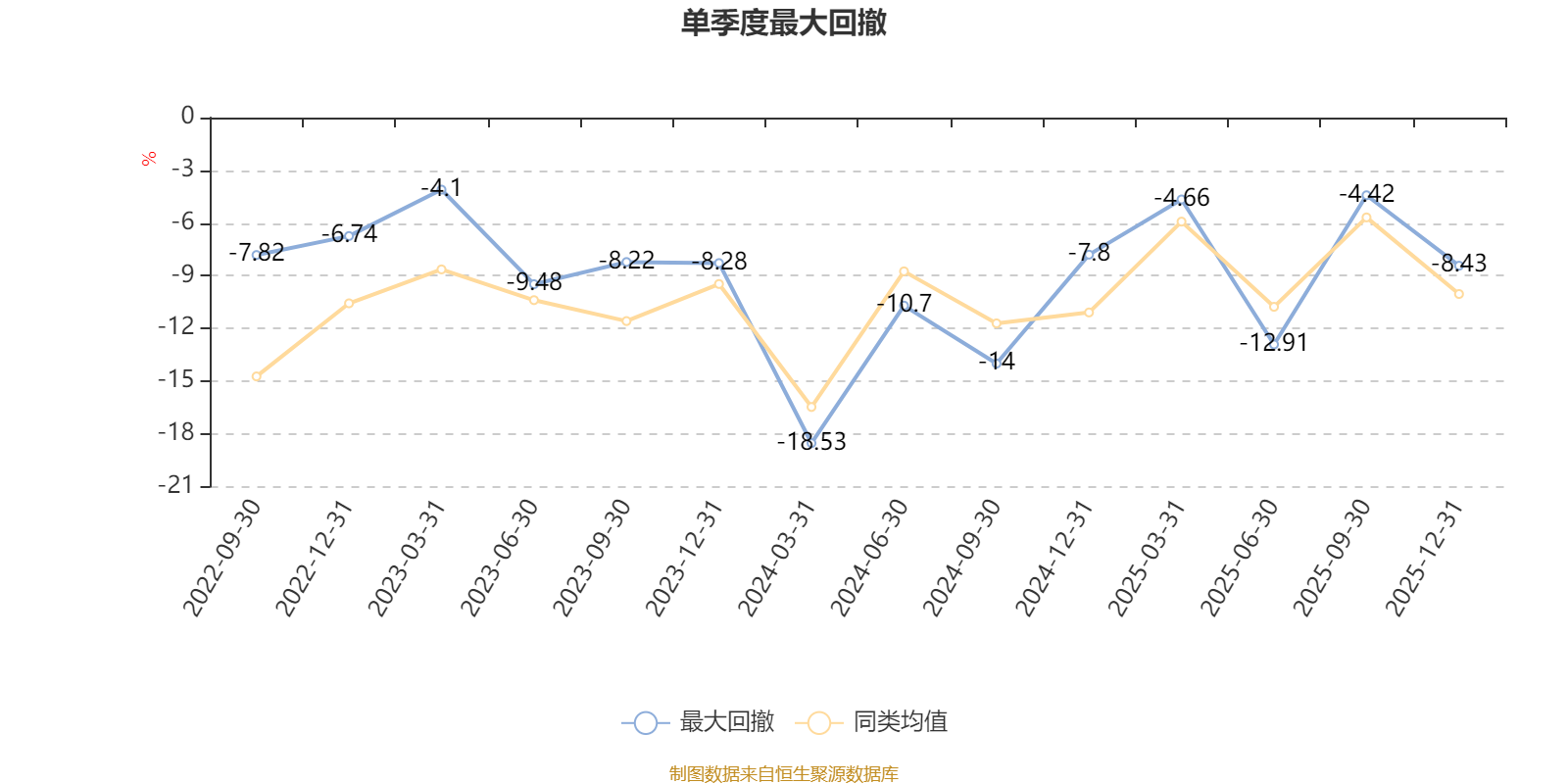截至1月21日,基金近三年最大回撤为30.64%,同类可比基金排名148/526。单季度最大回撤出现在2024年一季度,为18.53%。