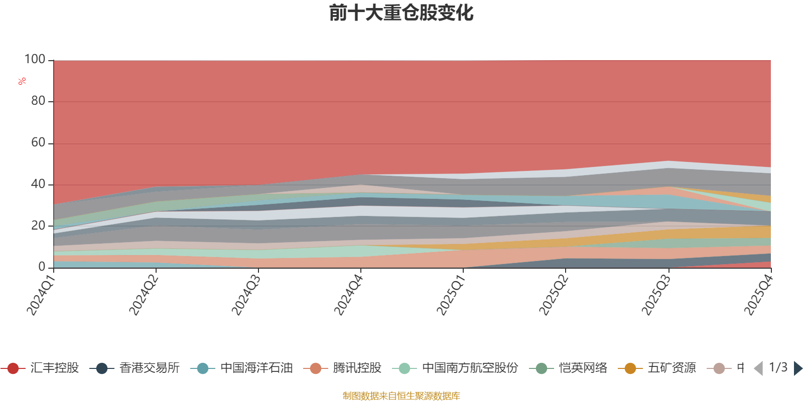 截至2025年四季度末,基金十大重仓股分别是紫金矿业、中国铝业、五矿资源、小商品城、香港交易所、腾讯控股、恺英网络、太阳纸业、汇丰控股、阿里巴巴-W。