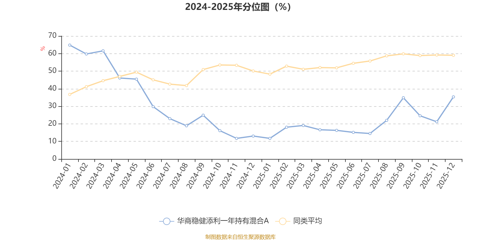 通过所选区间该基金净值增长率分位图,可以观察该基金与同类基金业绩比较情况。图为坐标原点到区间内某时点的净值增长率在同类基金中的分位数。