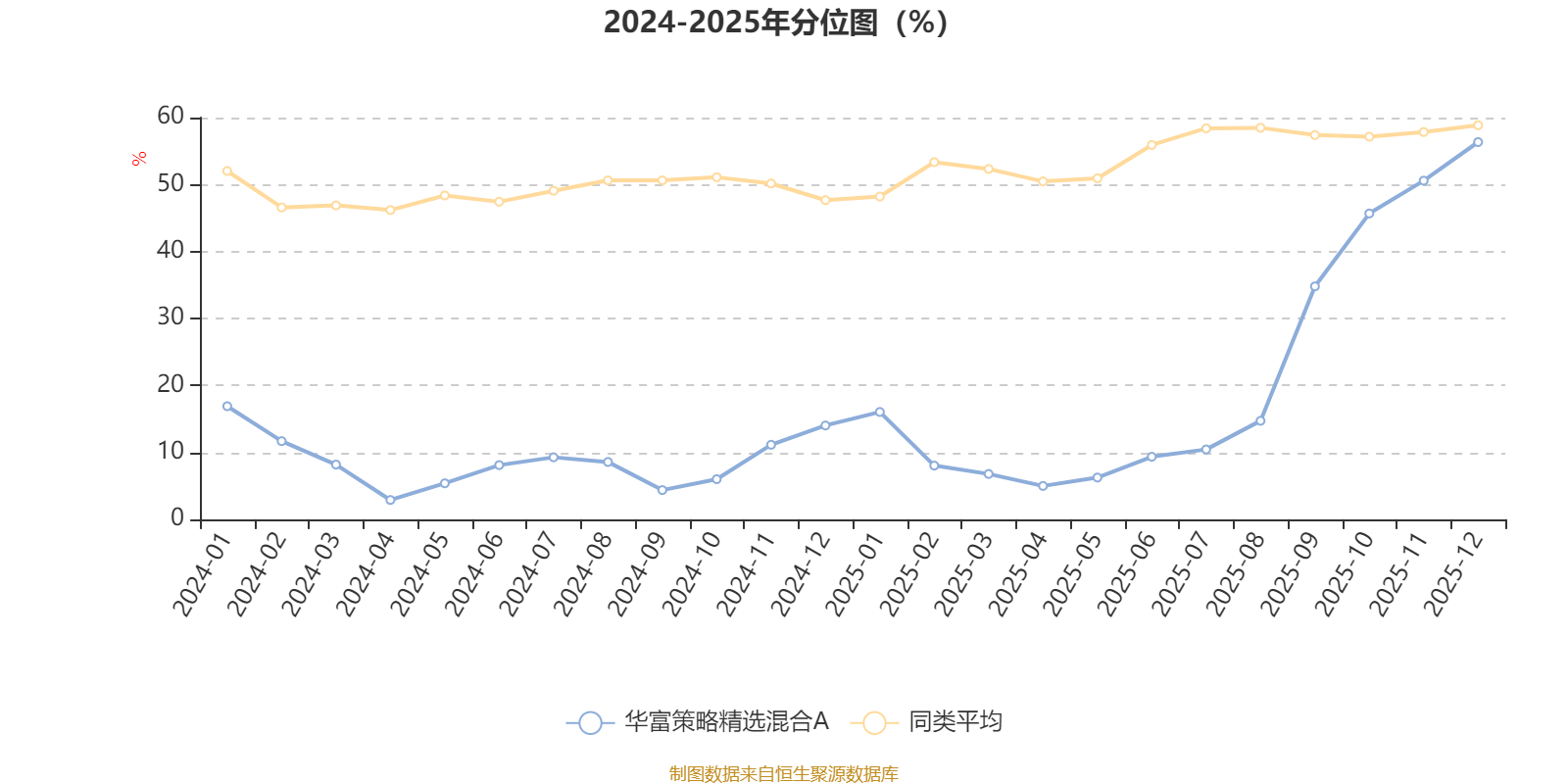 通过所选区间该基金净值增长率分位图,可以观察该基金与同类基金业绩比较情况。图为坐标原点到区间内某时点的净值增长率在同类基金中的分位数。