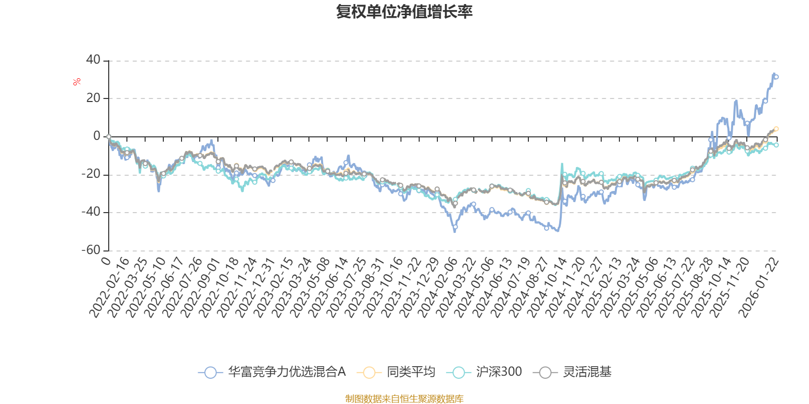 截至1月22日,华富竞争力优选混合A近三个月复权单位净值增长率为21.83%,位于同类可比基金105/1286;近半年复权单位净值增长率为69.91%,位于同类可比基金40/1286;近一年复权单位净值增长率为85.68%,位于同类可比基金45/1286;近三年复权单位净值增长率为54.71%,位于同类可比基金155/1286。