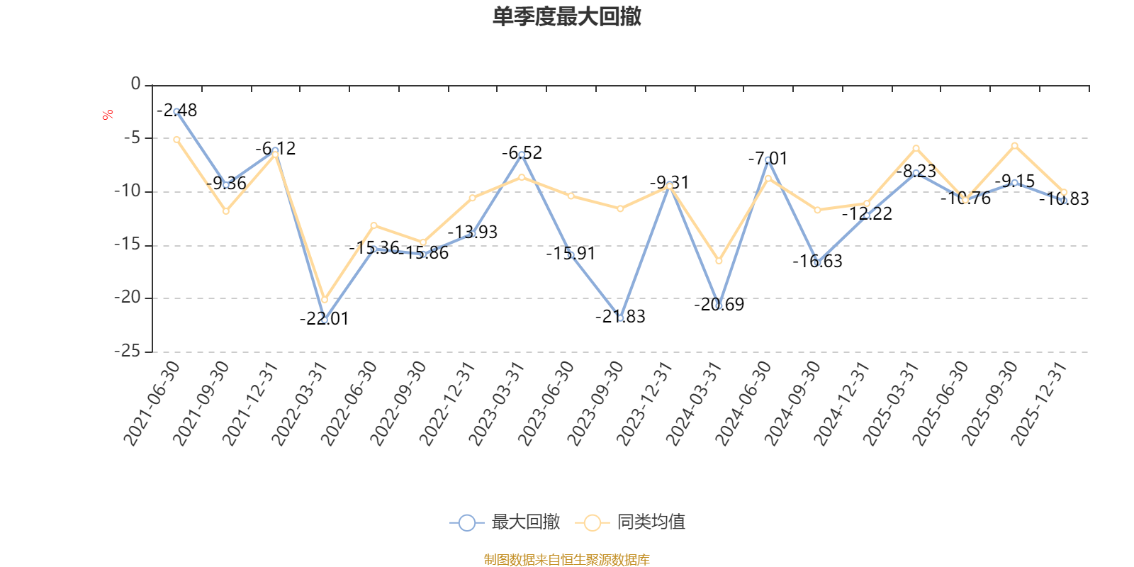 截至1月22日,基金近三年最大回撤为44.4%,同类可比基金排名387/450。单季度最大回撤出现在2022年一季度,为22.01%。