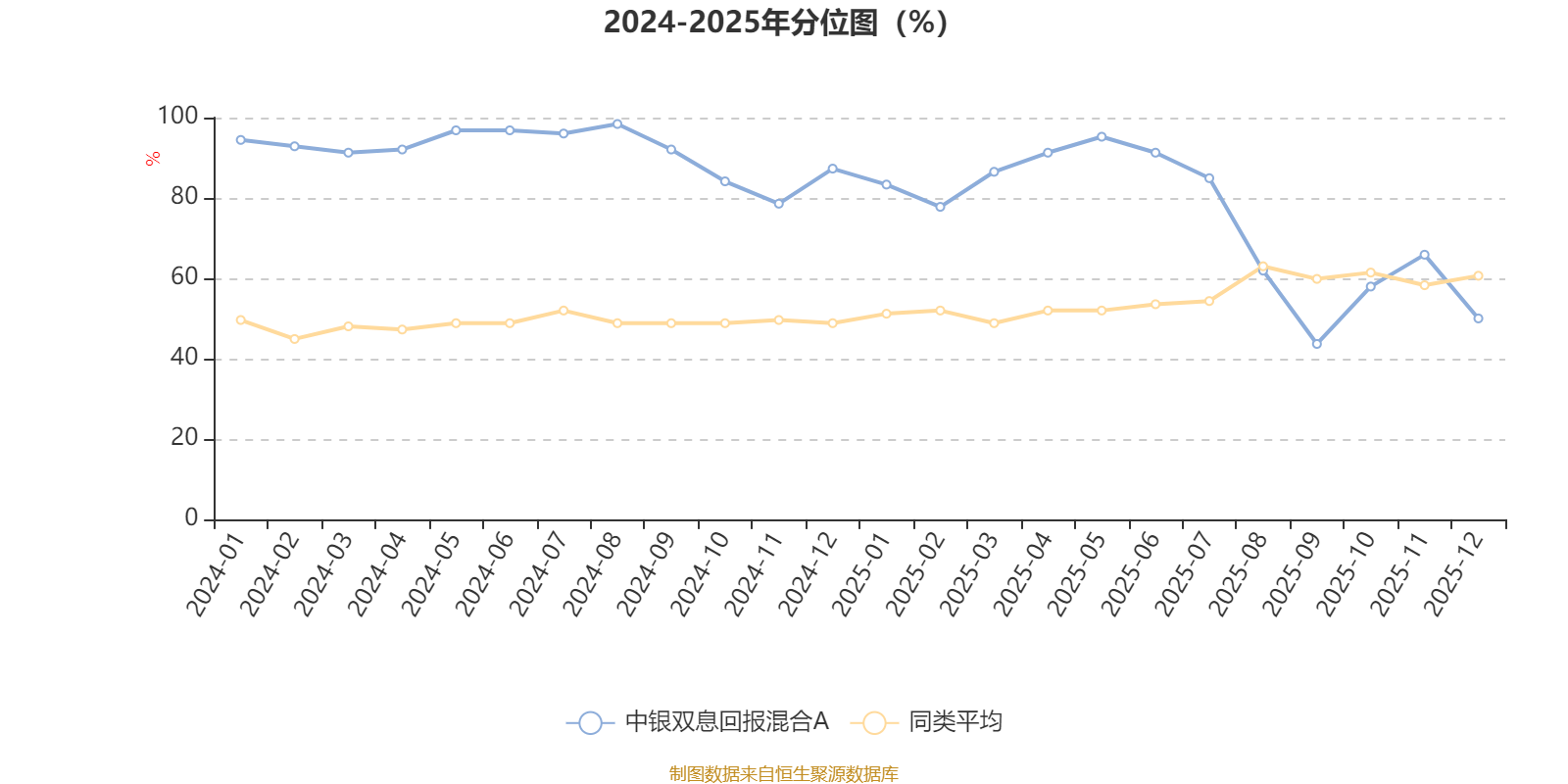 通过所选区间该基金净值增长率分位图,可以观察该基金与同类基金业绩比较情况。图为坐标原点到区间内某时点的净值增长率在同类基金中的分位数。