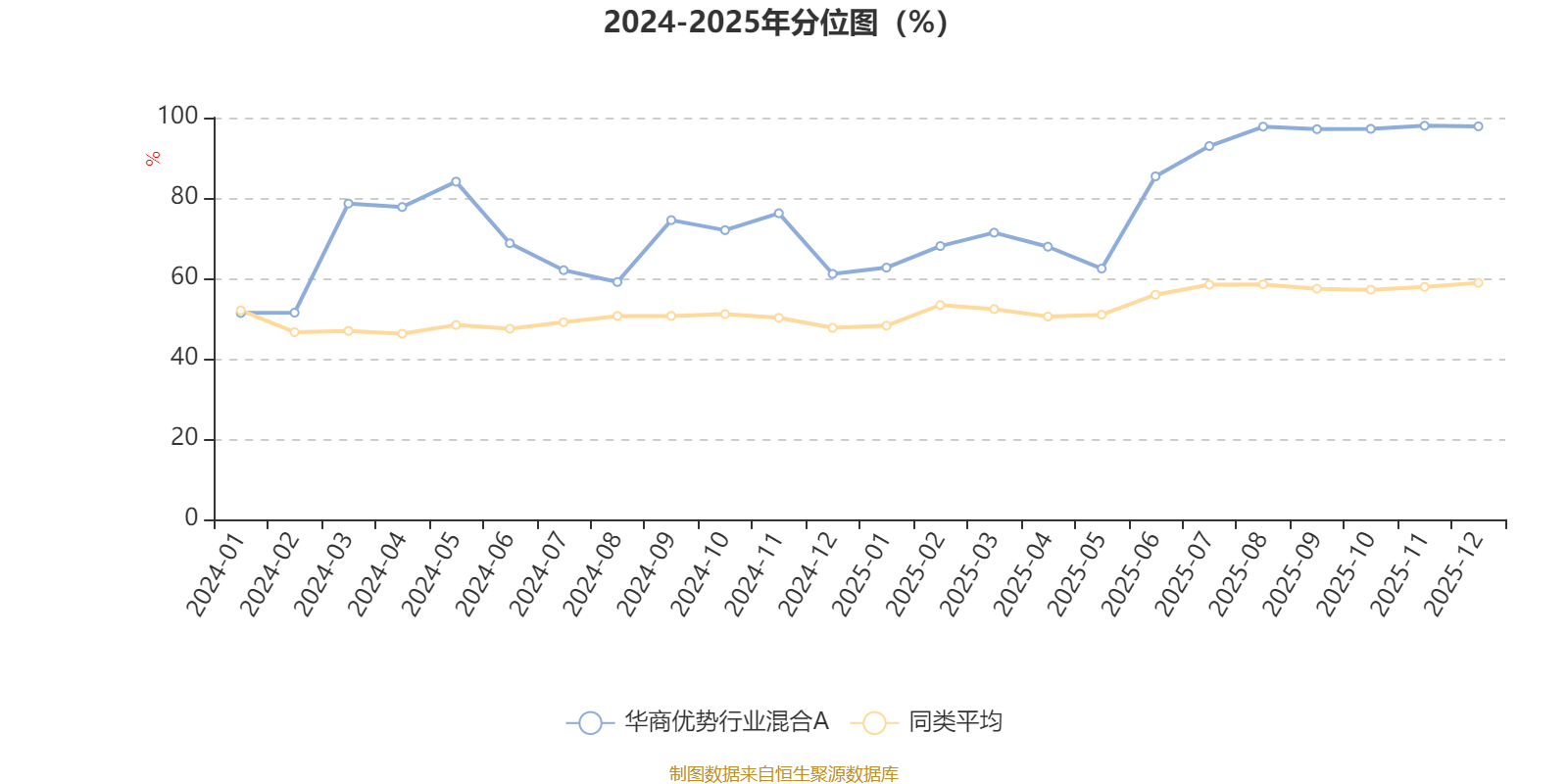 通过所选区间该基金净值增长率分位图,可以观察该基金与同类基金业绩比较情况。图为坐标原点到区间内某时点的净值增长率在同类基金中的分位数。