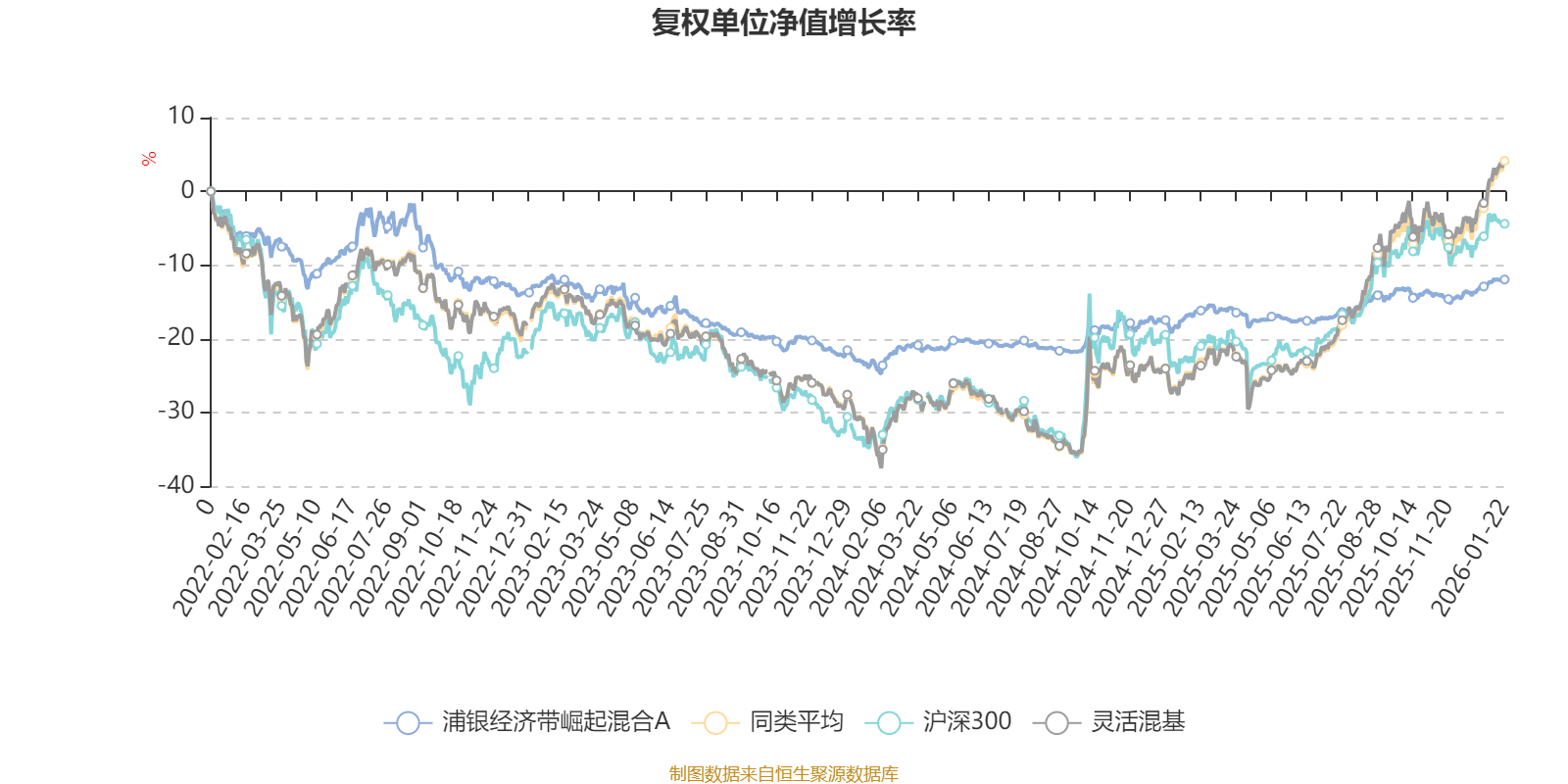 截至1月22日,浦银经济带崛起混合A近三个月复权单位净值增长率为2.35%,位于同类可比基金1019/1286;近半年复权单位净值增长率为5.29%,位于同类可比基金1059/1286;近一年复权单位净值增长率为5.81%,位于同类可比基金1184/1286;近三年复权单位净值增长率为-0.18%,位于同类可比基金1019/1286。