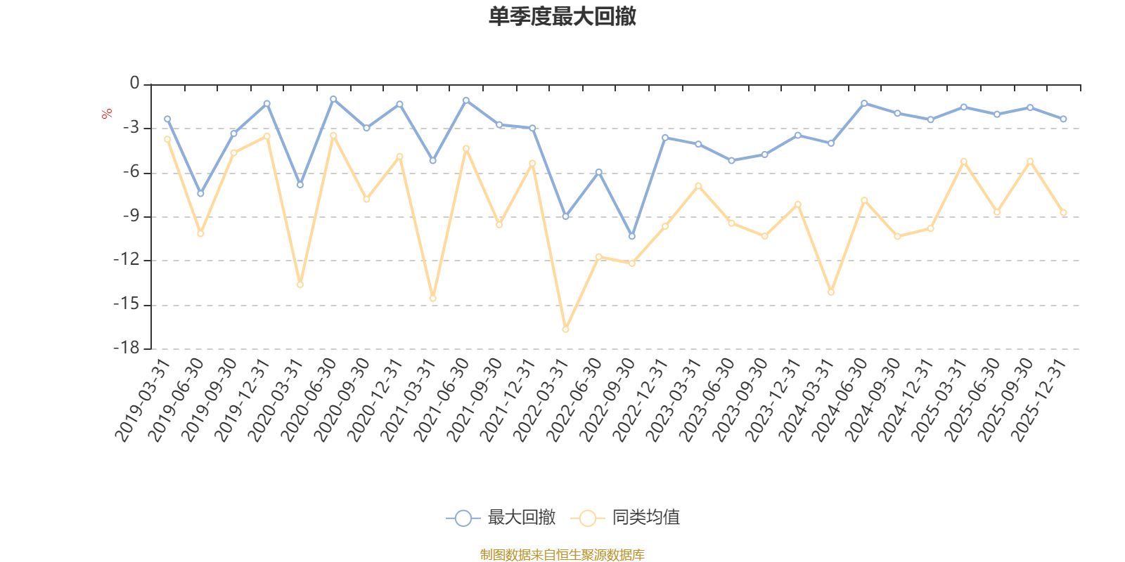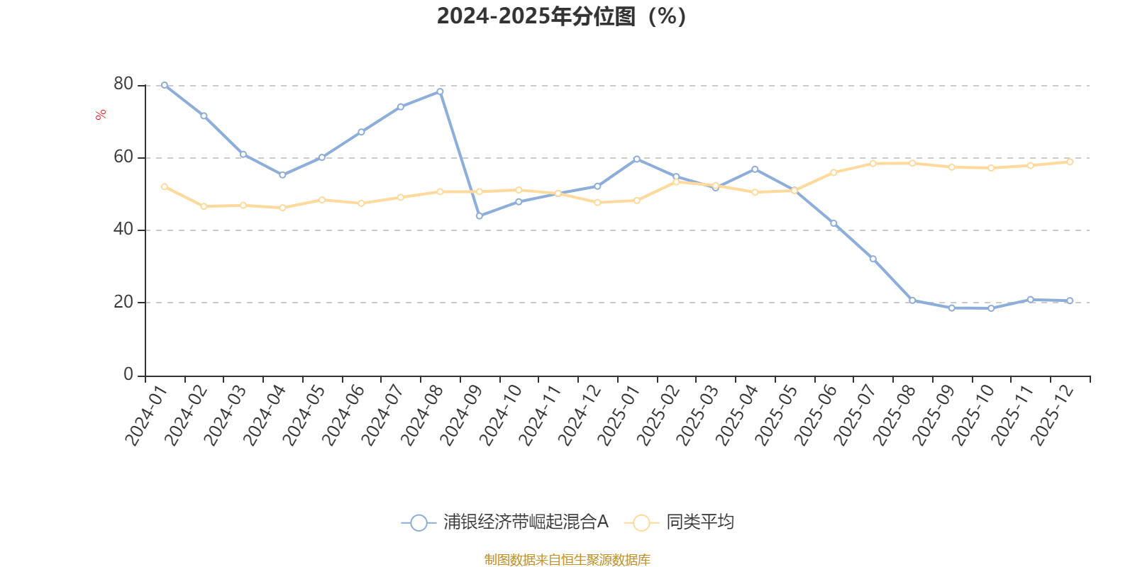 通过所选区间该基金净值增长率分位图,可以观察该基金与同类基金业绩比较情况。图为坐标原点到区间内某时点的净值增长率在同类基金中的分位数。
