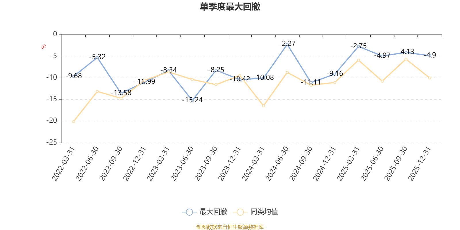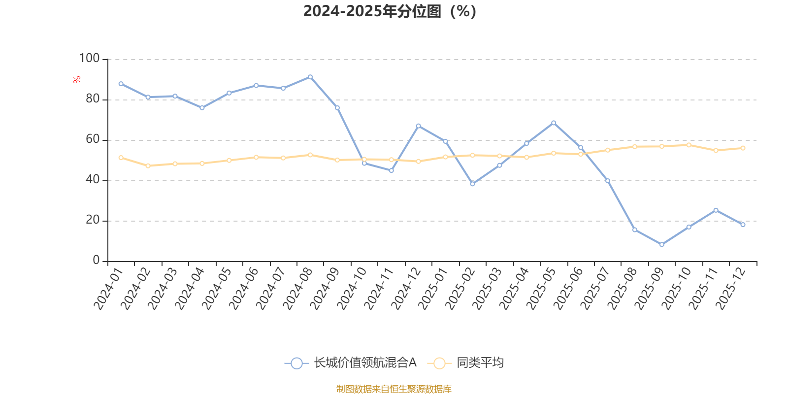 通过所选区间该基金净值增长率分位图,可以观察该基金与同类基金业绩比较情况。图为坐标原点到区间内某时点的净值增长率在同类基金中的分位数。