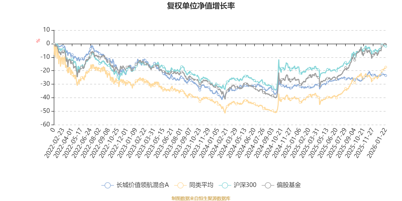 截至1月22日,长城价值领航混合A近三个月复权单位净值增长率为2.14%,位于同类可比基金542/621;近半年复权单位净值增长率为1.55%,位于同类可比基金590/621;近一年复权单位净值增长率为14.25%,位于同类可比基金571/613;近三年复权单位净值增长率为-12.45%,位于同类可比基金488/535。