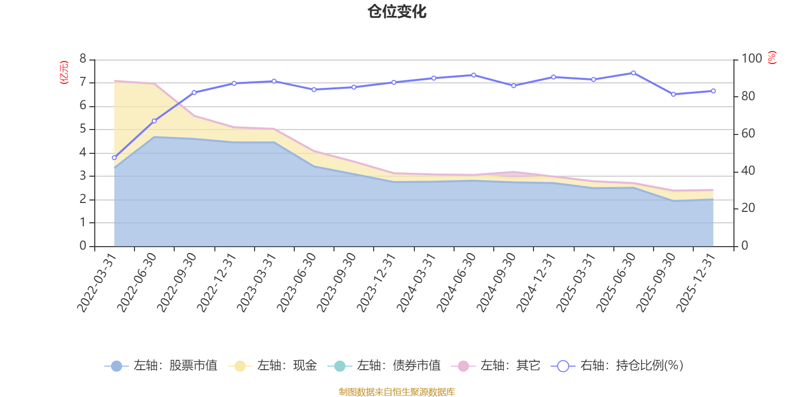 据定期报告数据统计,近三年平均股票仓位为87.54%,同类平均为85.83%。2025年上半年末基金达到92.84%的最高仓位,2022年一季度末最低,为47.5%。