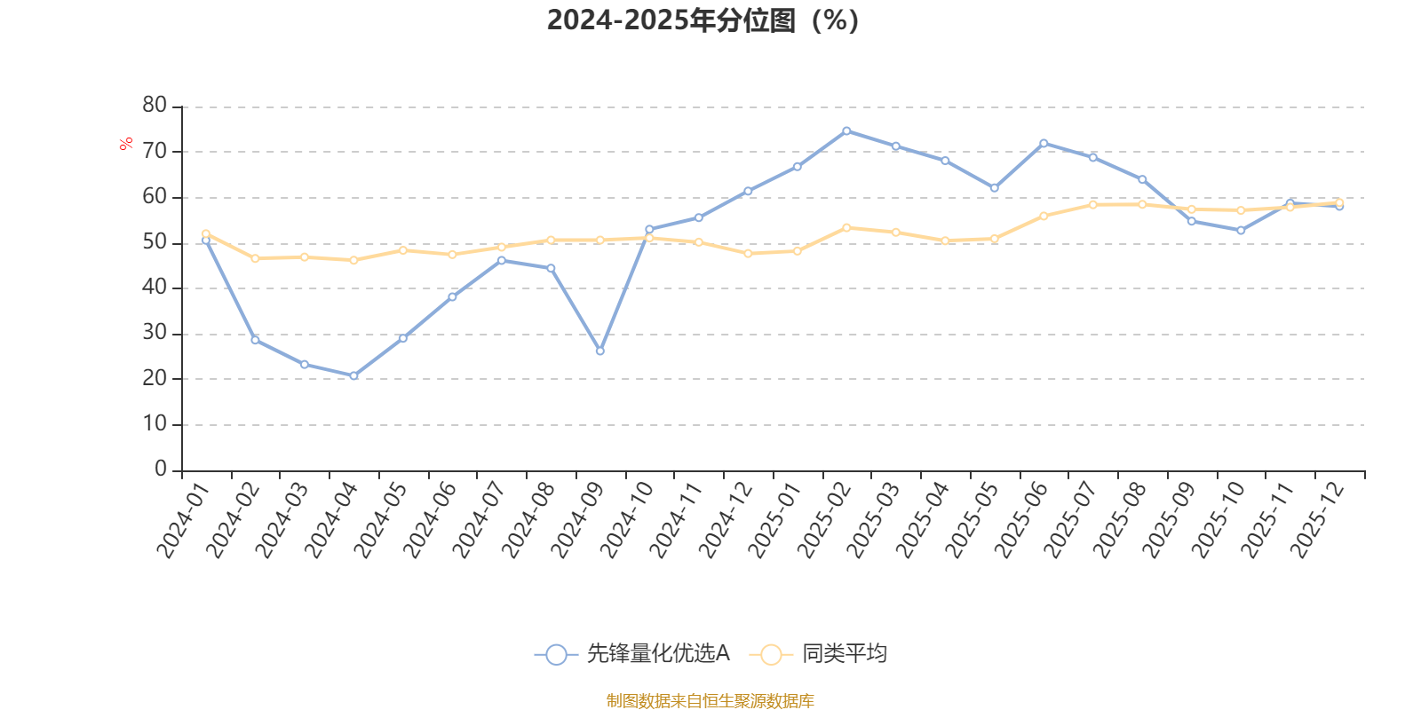 通过所选区间该基金净值增长率分位图,可以观察该基金与同类基金业绩比较情况。图为坐标原点到区间内某时点的净值增长率在同类基金中的分位数。