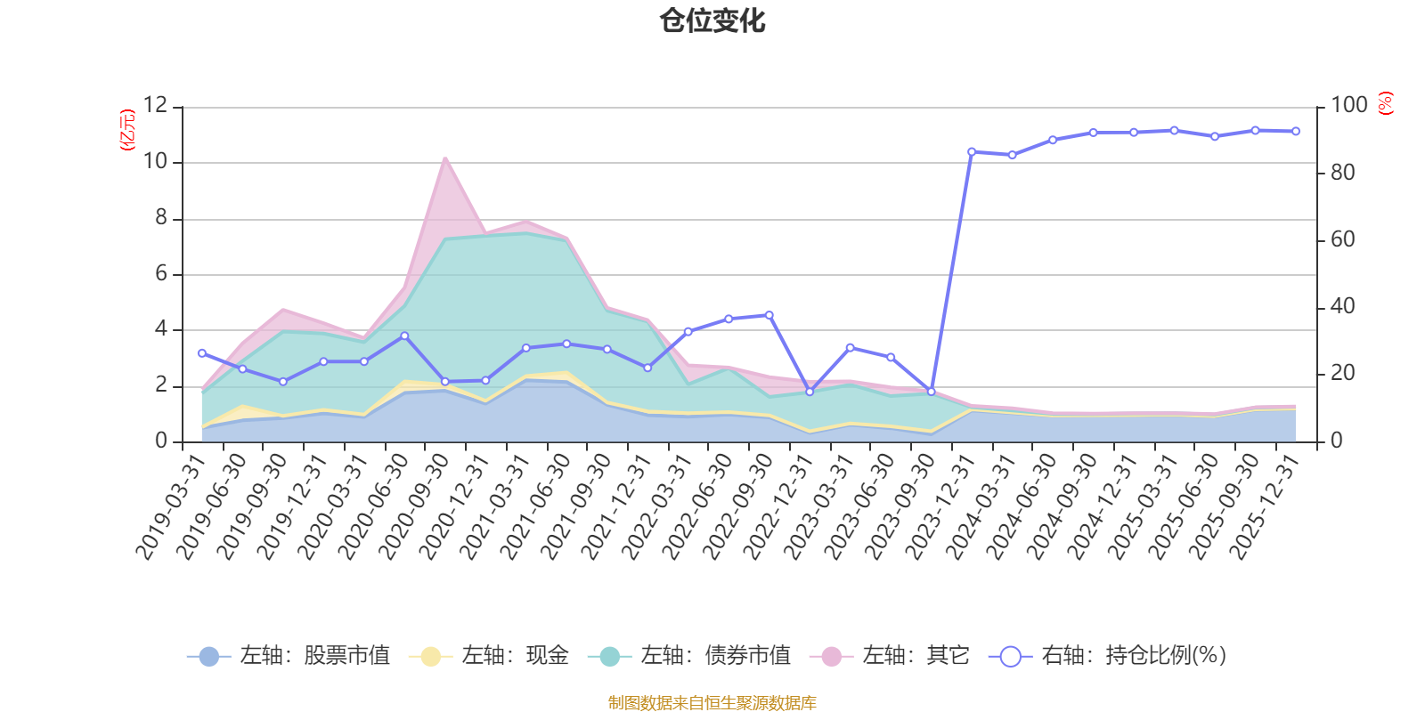 据定期报告数据统计,近三年平均股票仓位为73.76%,同类平均为72.57%。2025年三季度末基金达到92.96%的最高仓位,2022年末最低,为14.94%。