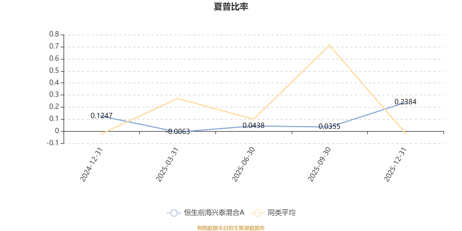 截至1月22日,恒生前海兴泰混合A近三个月复权单位净值增长率为2.21%,位于同类可比基金541/621;近半年复权单位净值增长率为1.31%,位于同类可比基金591/621;近一年复权单位净值增长率为12.64%,位于同类可比基金583/613。