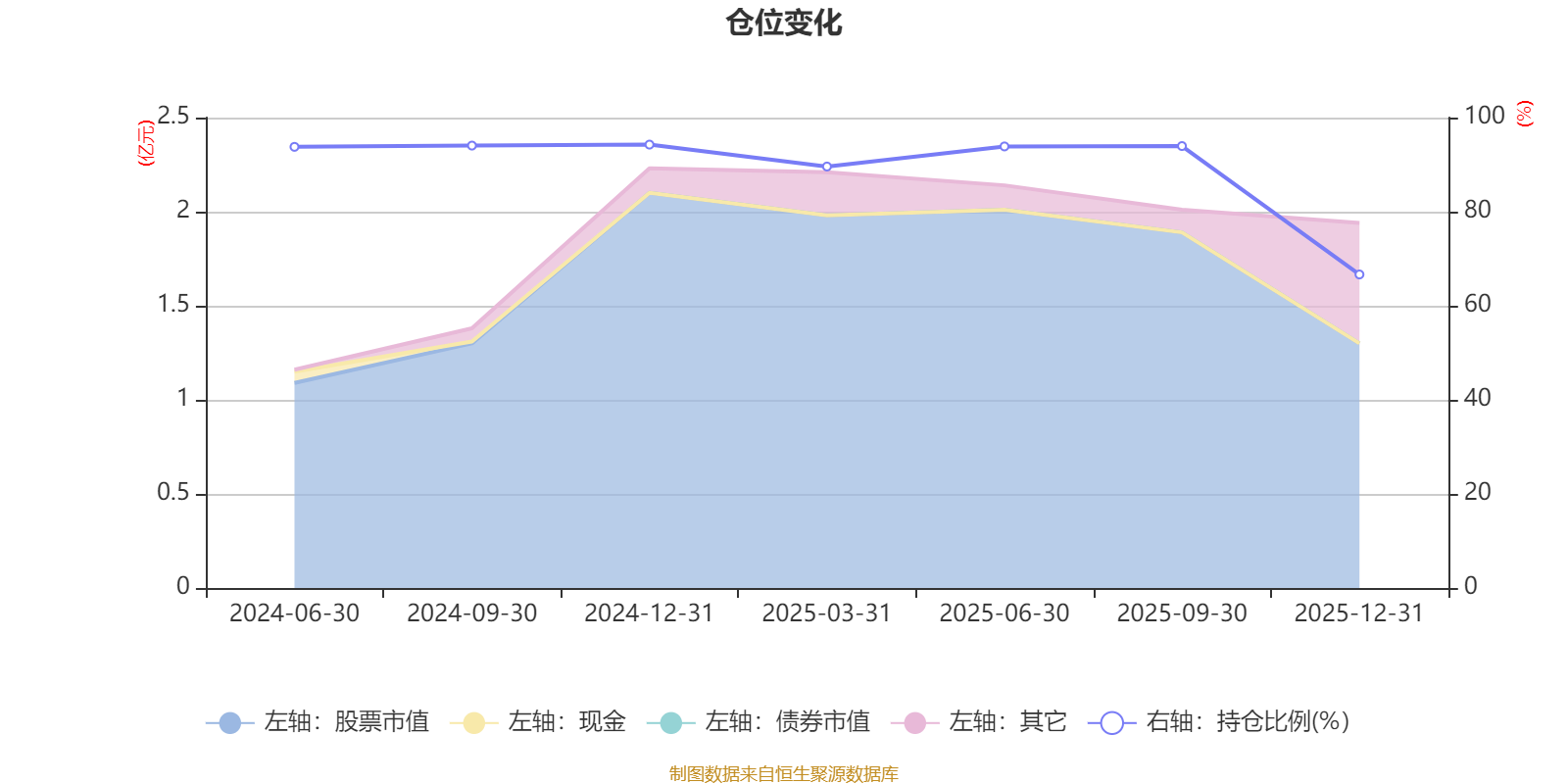 据定期报告数据统计,成立以来平均股票仓位为89.45%,同类平均为85.83%。2024年末基金达到94.26%的最高仓位,2025年末最低,为66.65%。