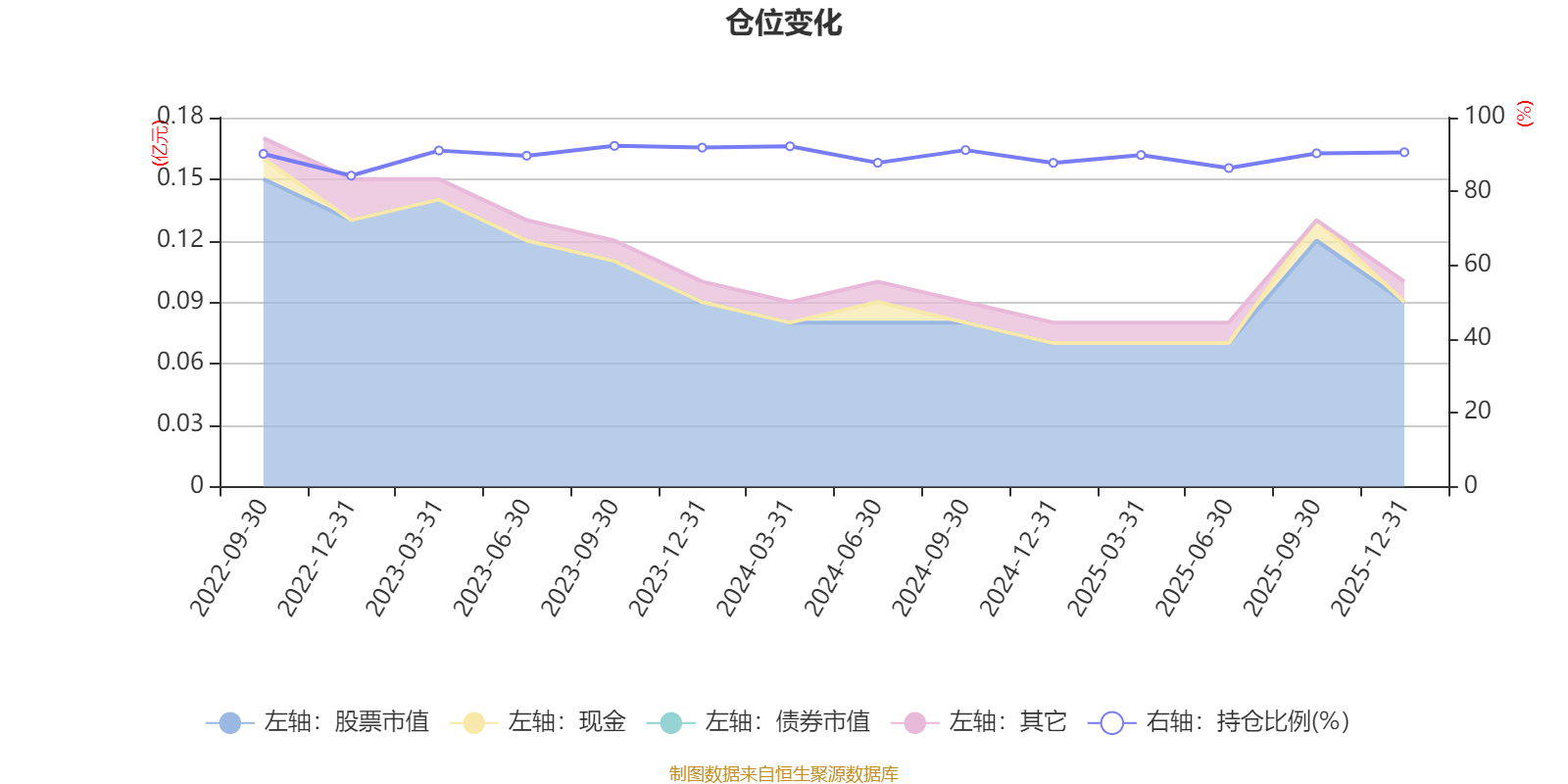 据定期报告数据统计,近三年平均股票仓位为90.08%,同类平均为84.04%。2023年三季度末基金达到92.34%的最高仓位,2022年末最低,为84.26%。