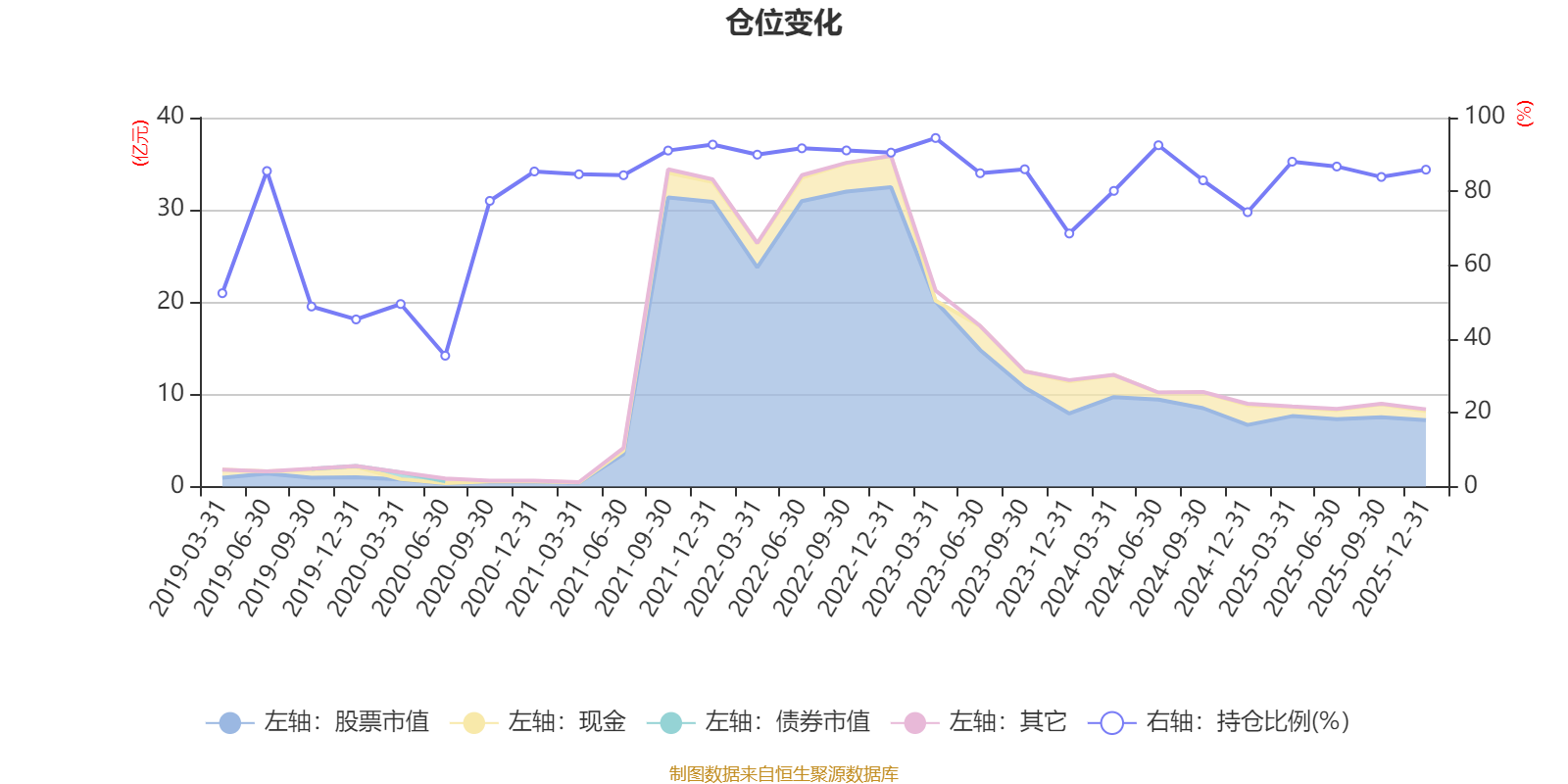 据定期报告数据统计,近三年平均股票仓位为84.05%,同类平均为72.57%。2023年一季度末基金达到94.47%的最高仓位,2020年上半年末最低,为35.47%。