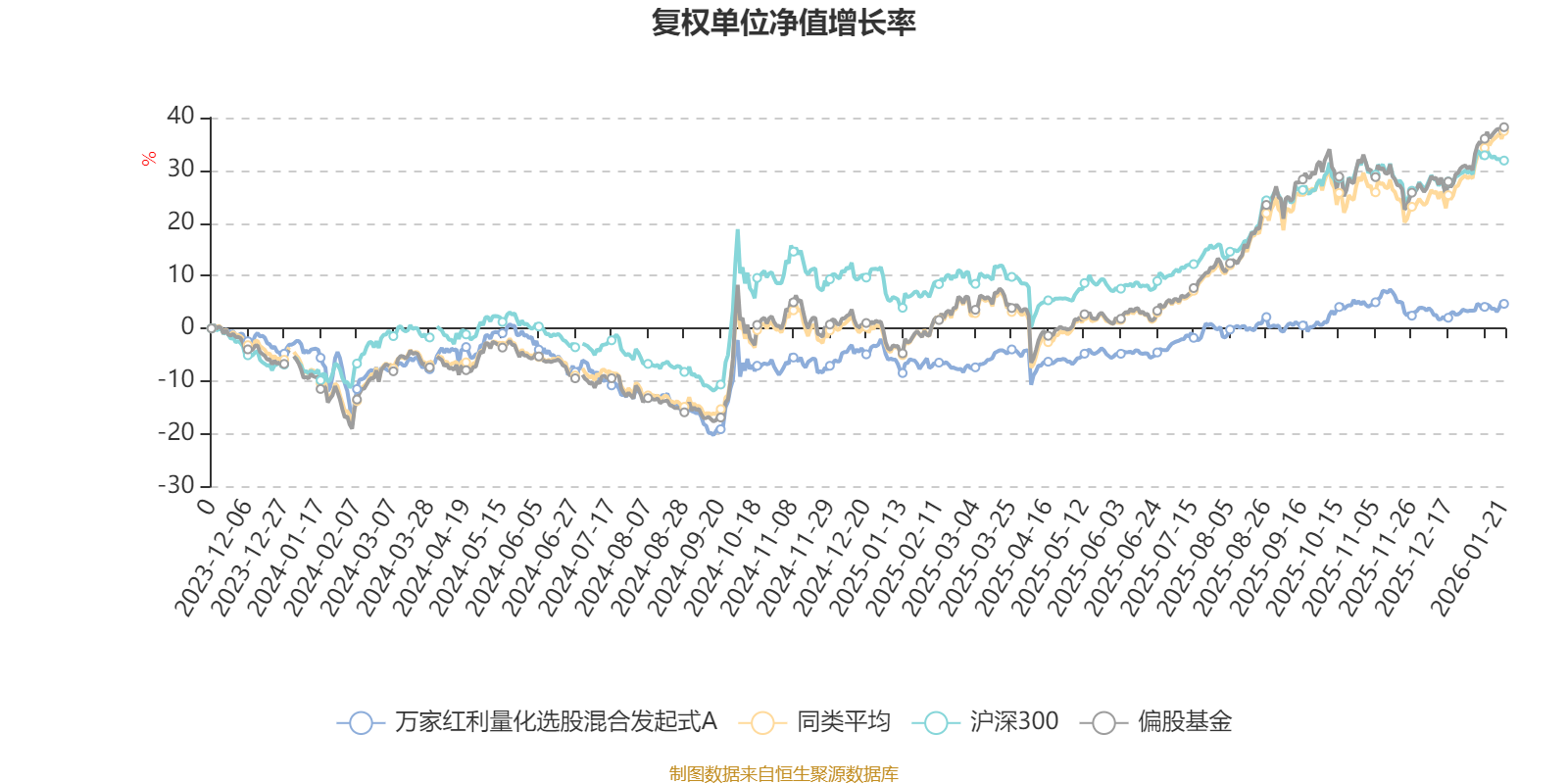 截至1月21日,万家红利量化选股混合发起式A近三个月复权单位净值增长率为0.24%,位于同类可比基金617/689;近半年复权单位净值增长率为5.07%,位于同类可比基金617/689;近一年复权单位净值增长率为12.17%,位于同类可比基金622/673。
