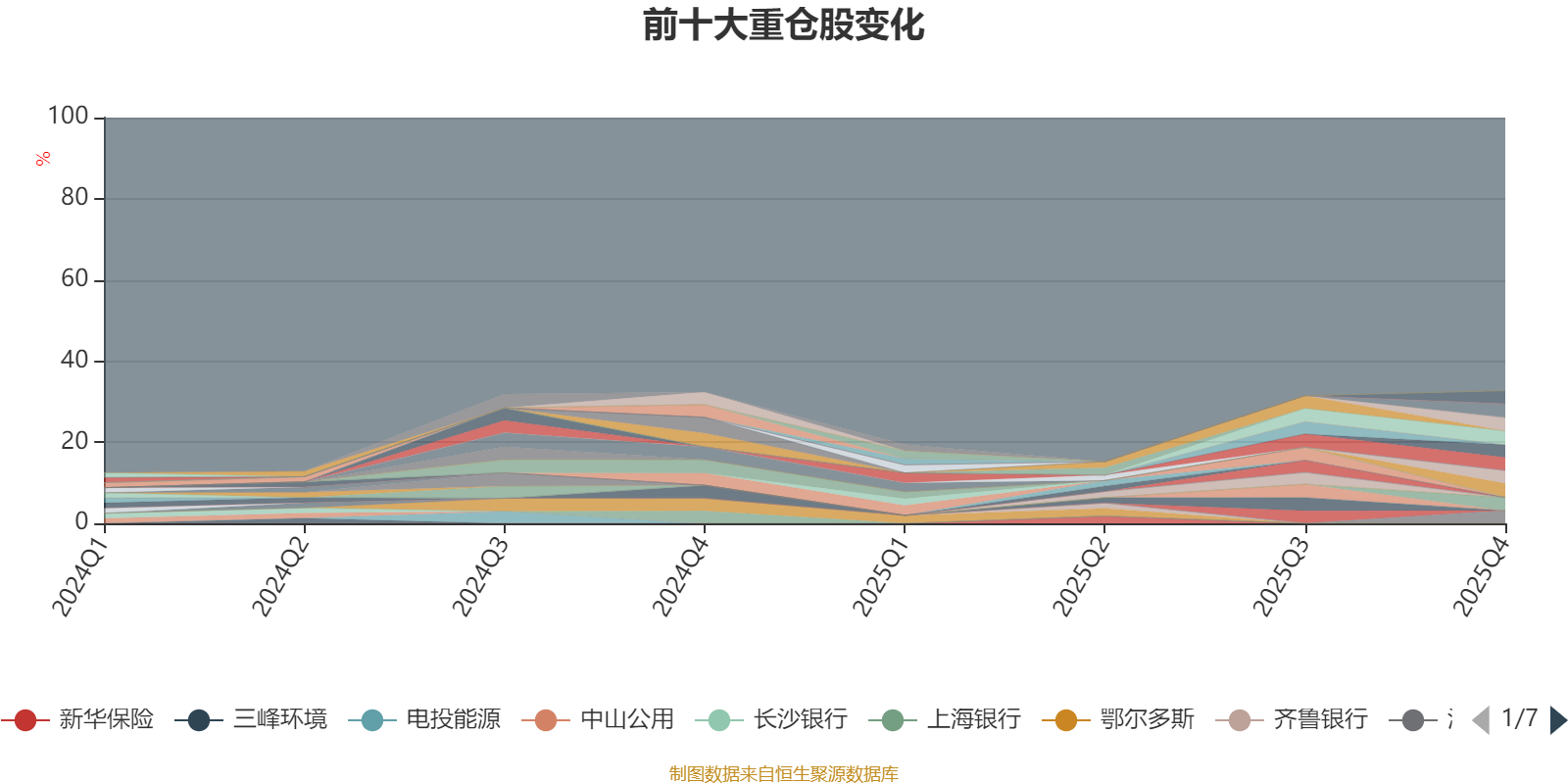 截至2025年四季度末,基金十大重仓股分别是鲁西化工、中国平安、中信银行、厦门象屿、中国石化、中谷物流、建设银行、沪农商行、中国石油、浦发银行。
