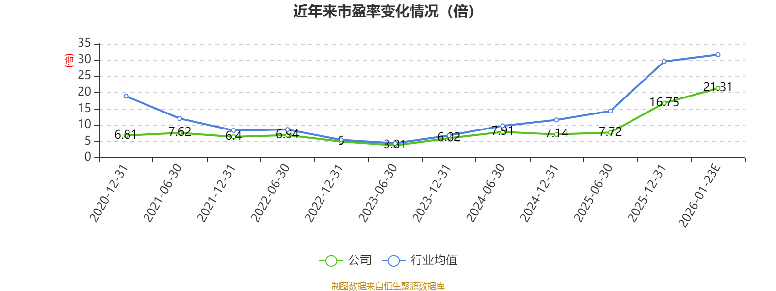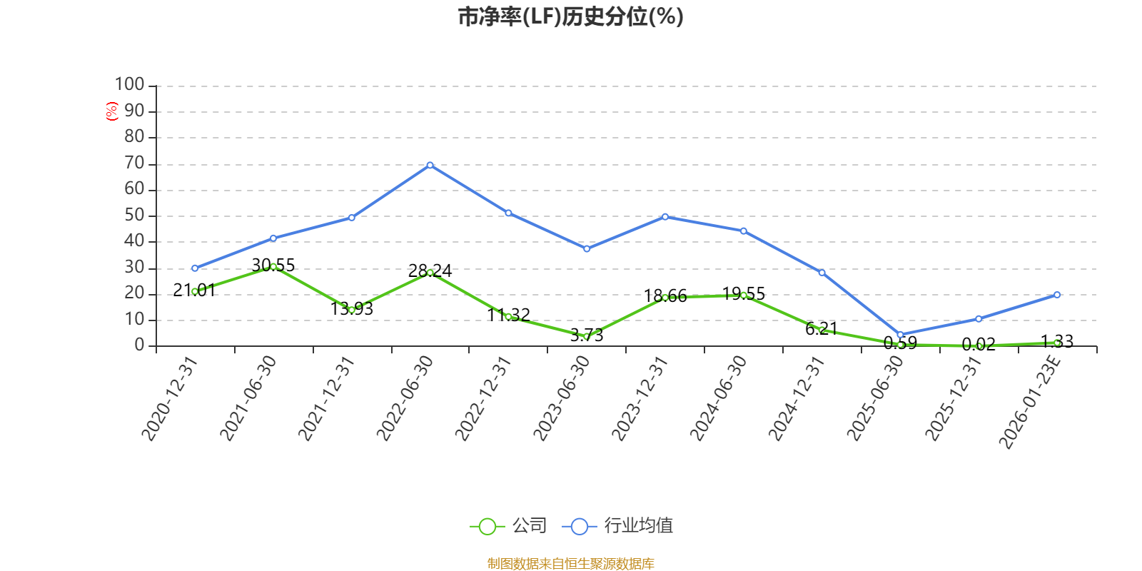 中证智能财讯淮北矿业(600985)1月23日晚间披露2025年度业绩预告,预计2025年归母净利润14.95亿元,同比下降69.21%;扣非净利润预计13.38亿元,同比下降71.18%。以1月23日收盘价计算,淮北矿业目前市盈率(TTM)约为21.31倍,市净率(LF)约0.77倍,市销率(TTM)约0.78倍。