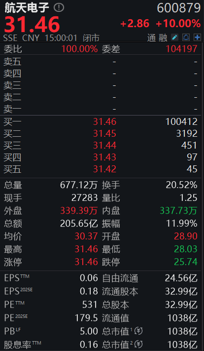 截至今日收盘,公司股票收盘价为31.46元/股,公司股票成交额205.65亿元,成交量较大。