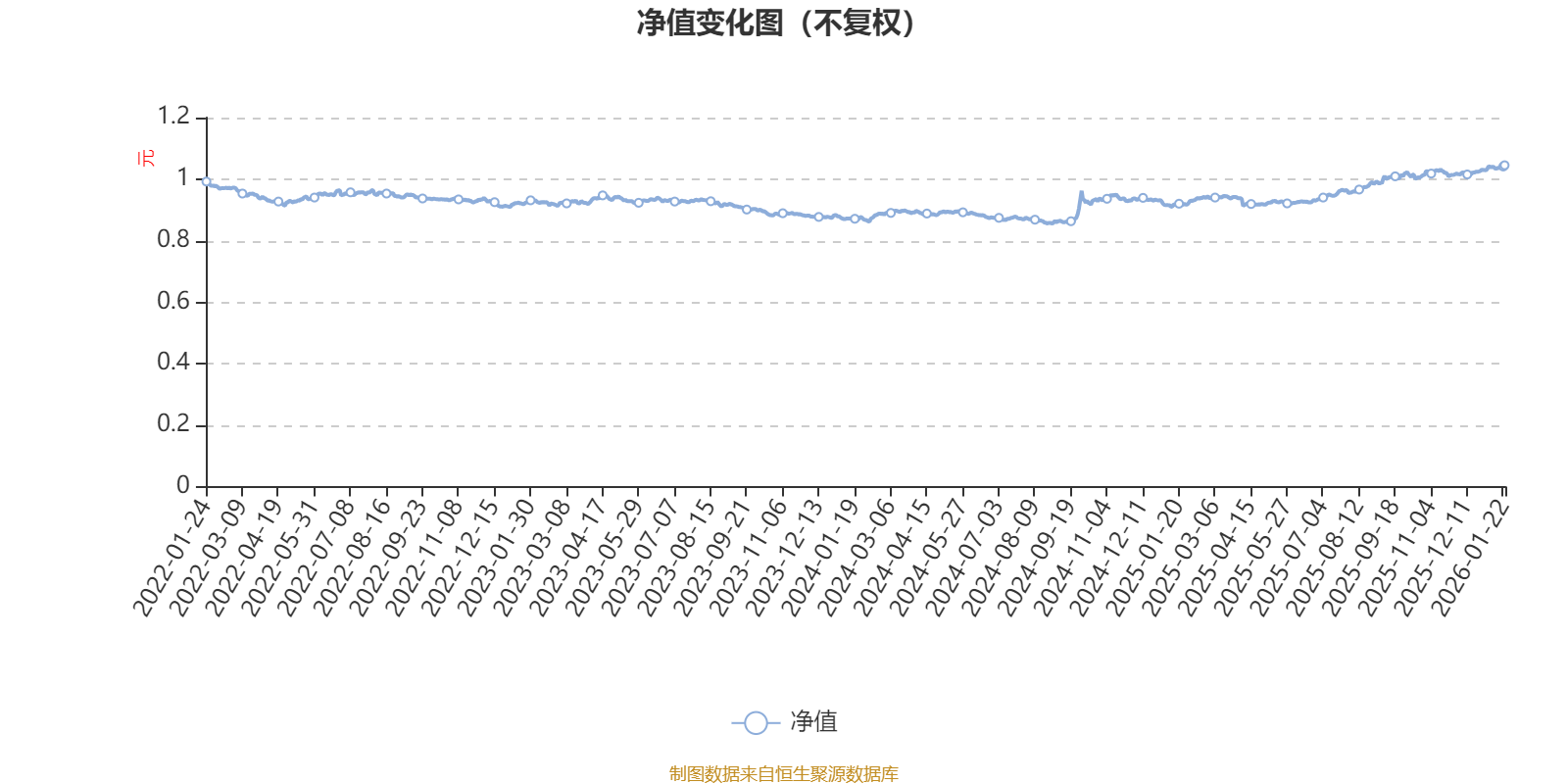 该基金属于偏债混合型基金。截至1月22日,单位净值为1.045元。基金经理是黄军锋。