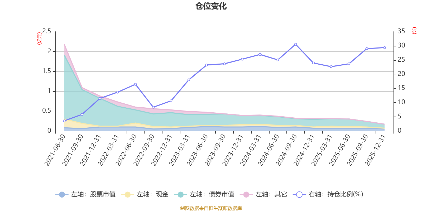 据定期报告数据统计,近三年平均股票仓位为25.12%,同类平均为19.2%。2024年三季度末基金达到30.55%的最高仓位,2021年上半年末最低,为3.56%。