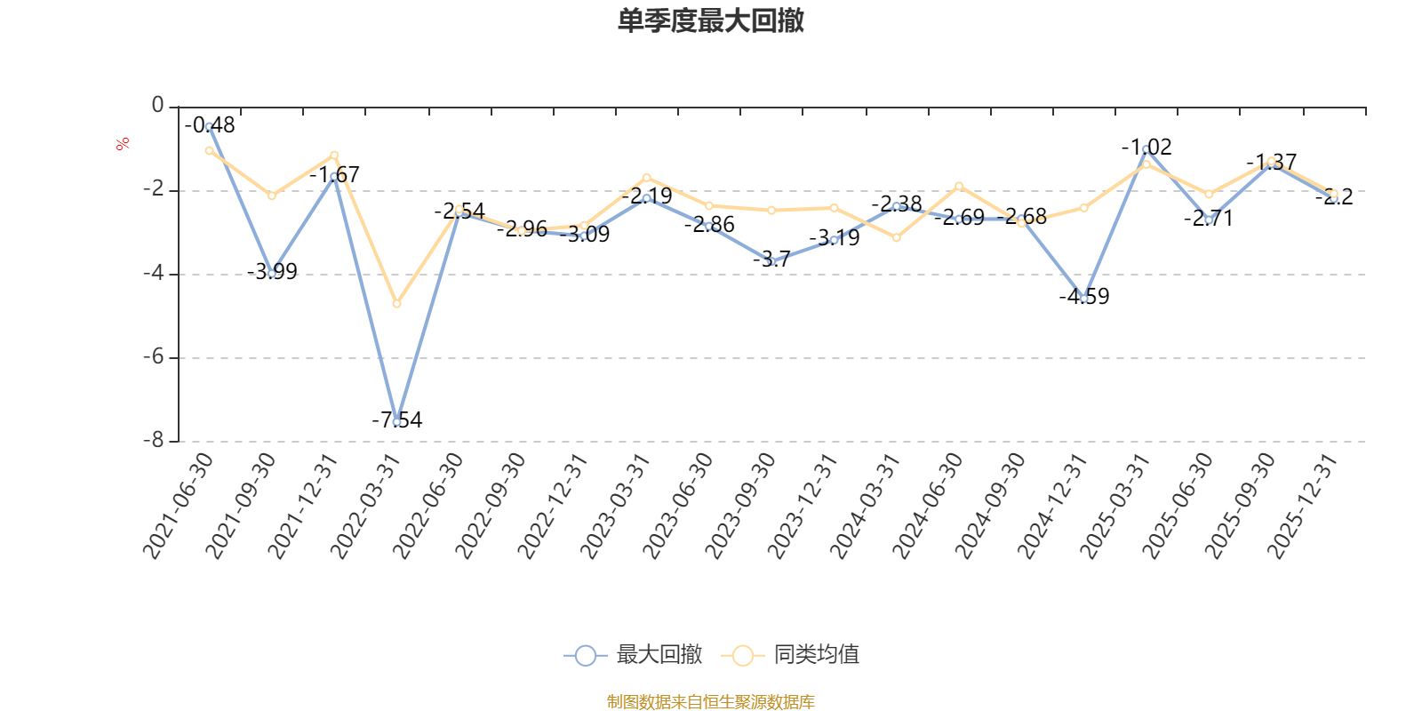 截至1月21日,基金近三年最大回撤为9.95%,同类可比基金排名388/526。单季度最大回撤出现在2022年一季度,为7.54%。
