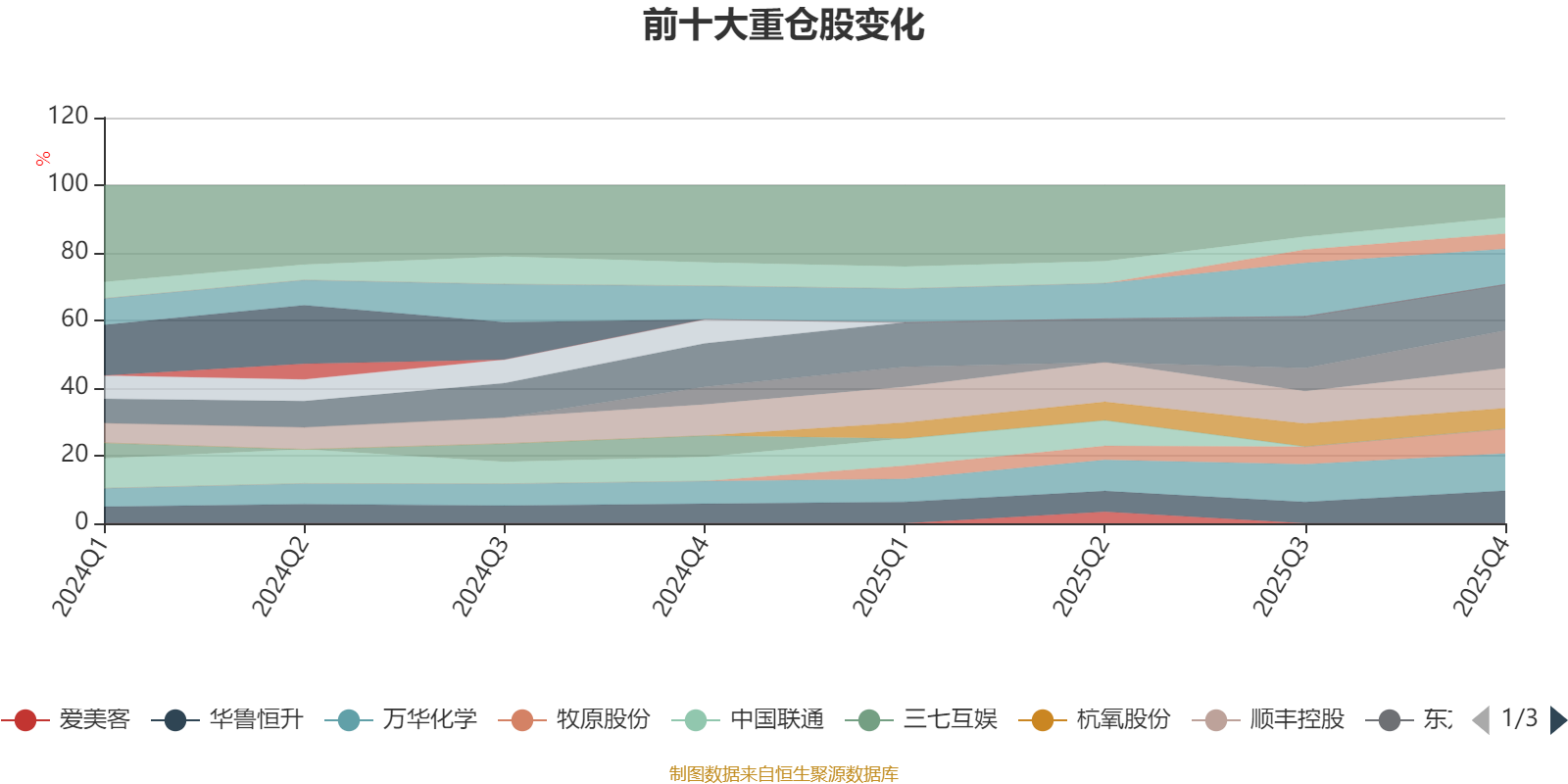 该基金持股集中度较高,近2年前十大重仓股集中度长期超过60%。截至2025年四季度末,基金十大重仓股分别是宁德时代、顺丰控股、东方雨虹、万华化学、阳光电源、华鲁恒升、牧原股份、杭氧股份、东方财富、恺英网络。