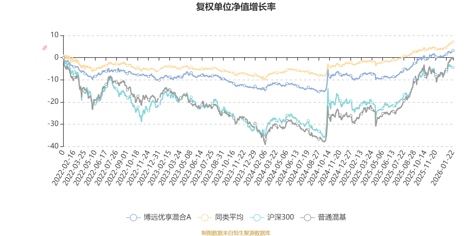 截至1月22日,博远优享混合A近三个月复权单位净值增长率为4.12%,位于同类可比基金115/629;近半年复权单位净值增长率为8.77%,位于同类可比基金96/629;近一年复权单位净值增长率为14.04%,位于同类可比基金97/626;近三年复权单位净值增长率为12.37%,位于同类可比基金257/564。