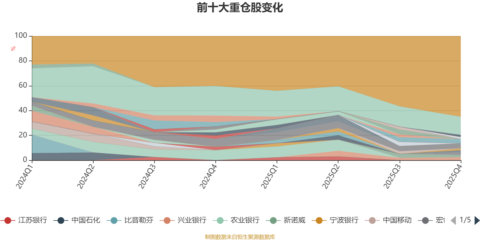 截至2025年四季度末,基金十大重仓股分别是长江电力、中国神华、建设银行、兴业银行、宏创控股、新诺威、北京银行、藏格矿业、中信银行、紫金矿业。