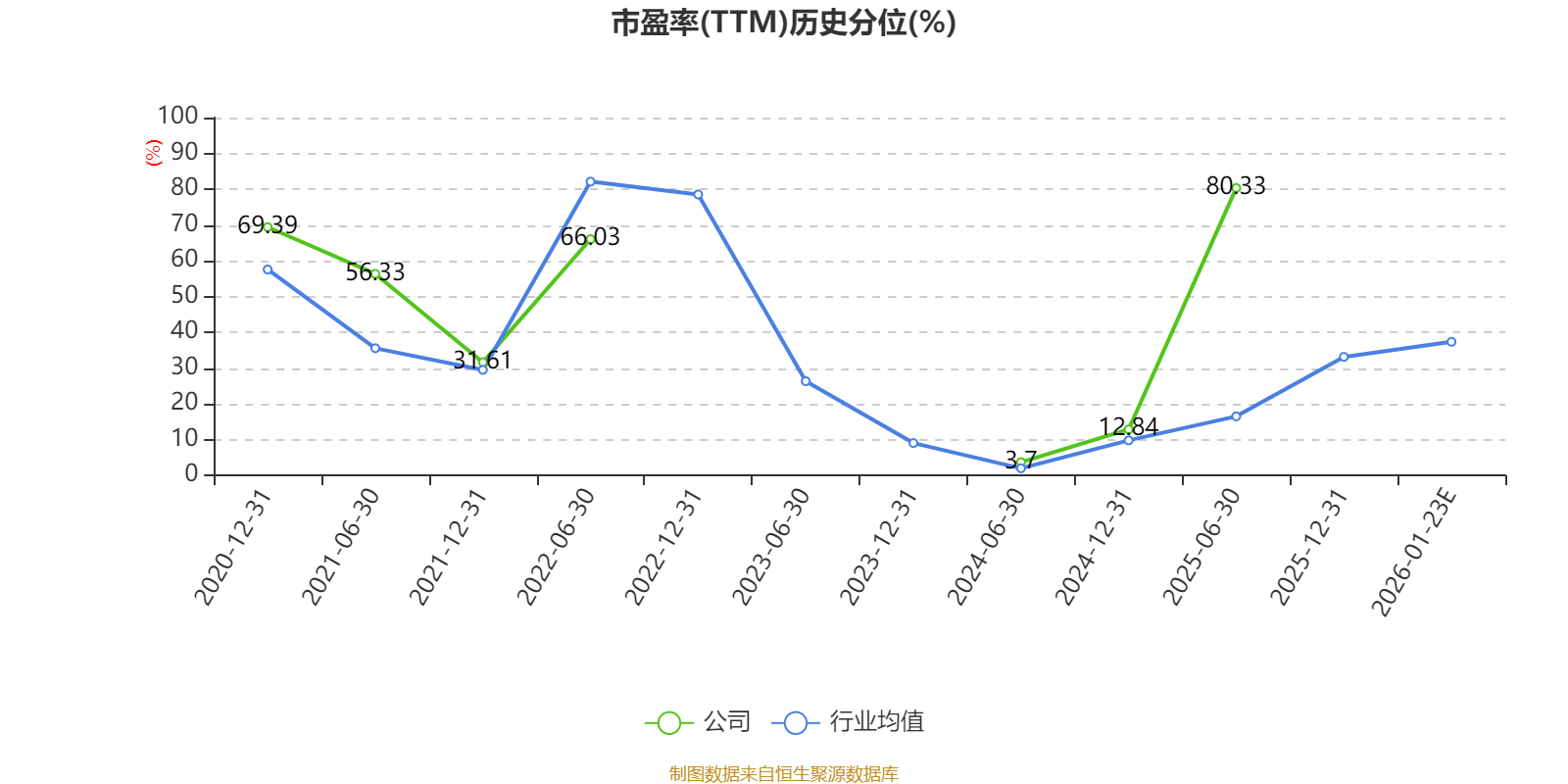 以本次披露业绩预告均值计算,公司近年市盈率(TTM)图如下所示: