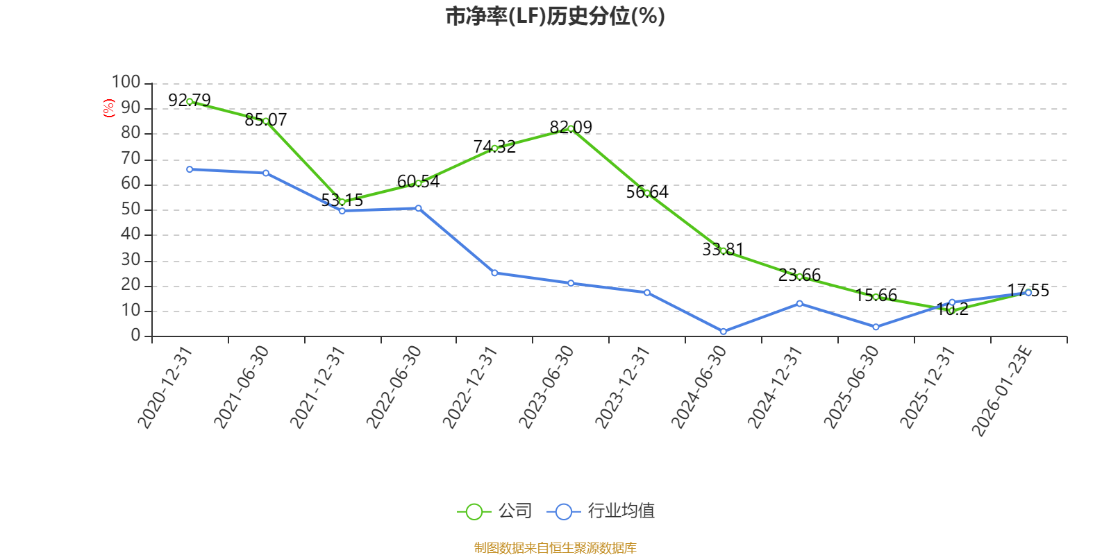 市盈率、市净率为负时,不显示当期分位数,会导致折线图中断。