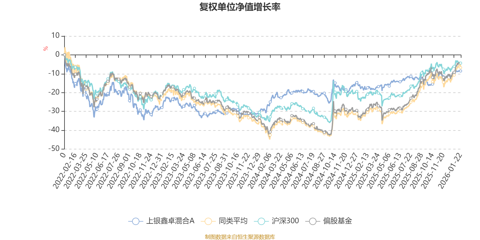 截至1月22日,上银鑫卓混合A近三个月复权单位净值增长率为5.31%,位于同类可比基金196/265;近半年复权单位净值增长率为3.14%,位于同类可比基金257/265;近一年复权单位净值增长率为12.68%,位于同类可比基金256/265;近三年复权单位净值增长率为18.15%,位于同类可比基金128/256。