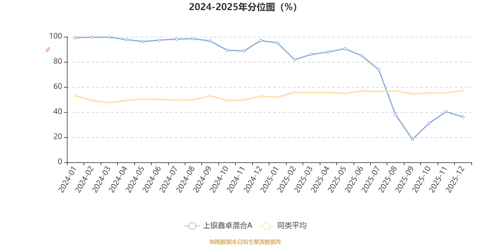 通过所选区间该基金净值增长率分位图,可以观察该基金与同类基金业绩比较情况。图为坐标原点到区间内某时点的净值增长率在同类基金中的分位数。