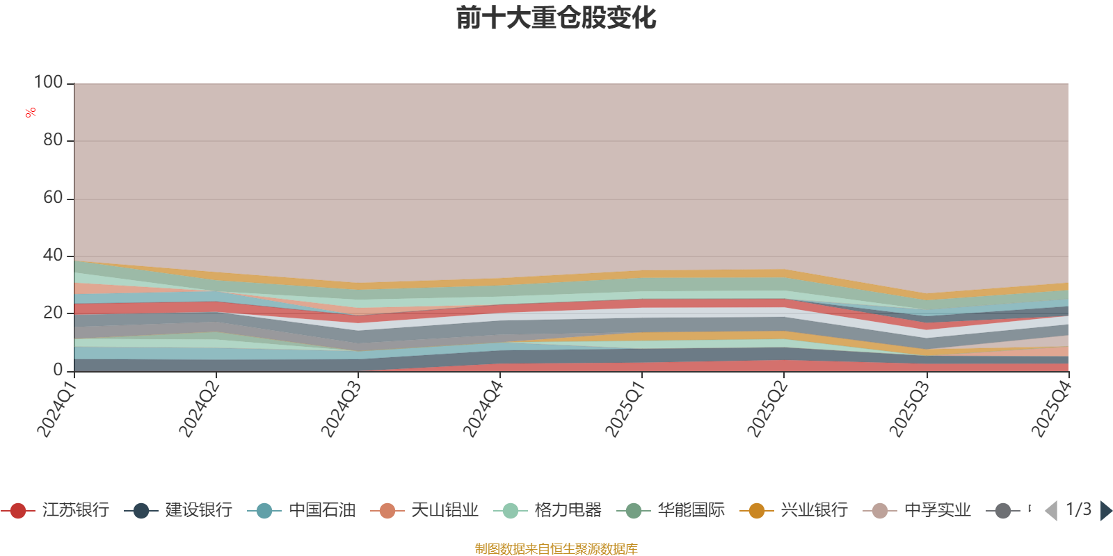 截至2025年四季度末,基金十大重仓股分别是中孚实业、农业银行、天山铝业、宏创控股、工商银行、中国平安、招商银行、江苏银行、美的集团、建设银行。