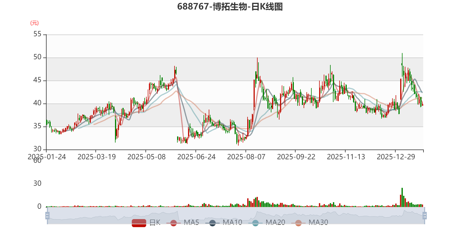 中证智能财讯博拓生物(688767)1月23日晚间披露2025年度业绩预告,预计2025年归母净利润4500万元,同比下降73.45%;扣非净利润预计2400万元,同比下降79.88%。以1月23日收盘价计算,博拓生物目前市盈率(TTM)约为132.21倍,市净率(LF)约2.54倍,市销率(TTM)约12.43倍。